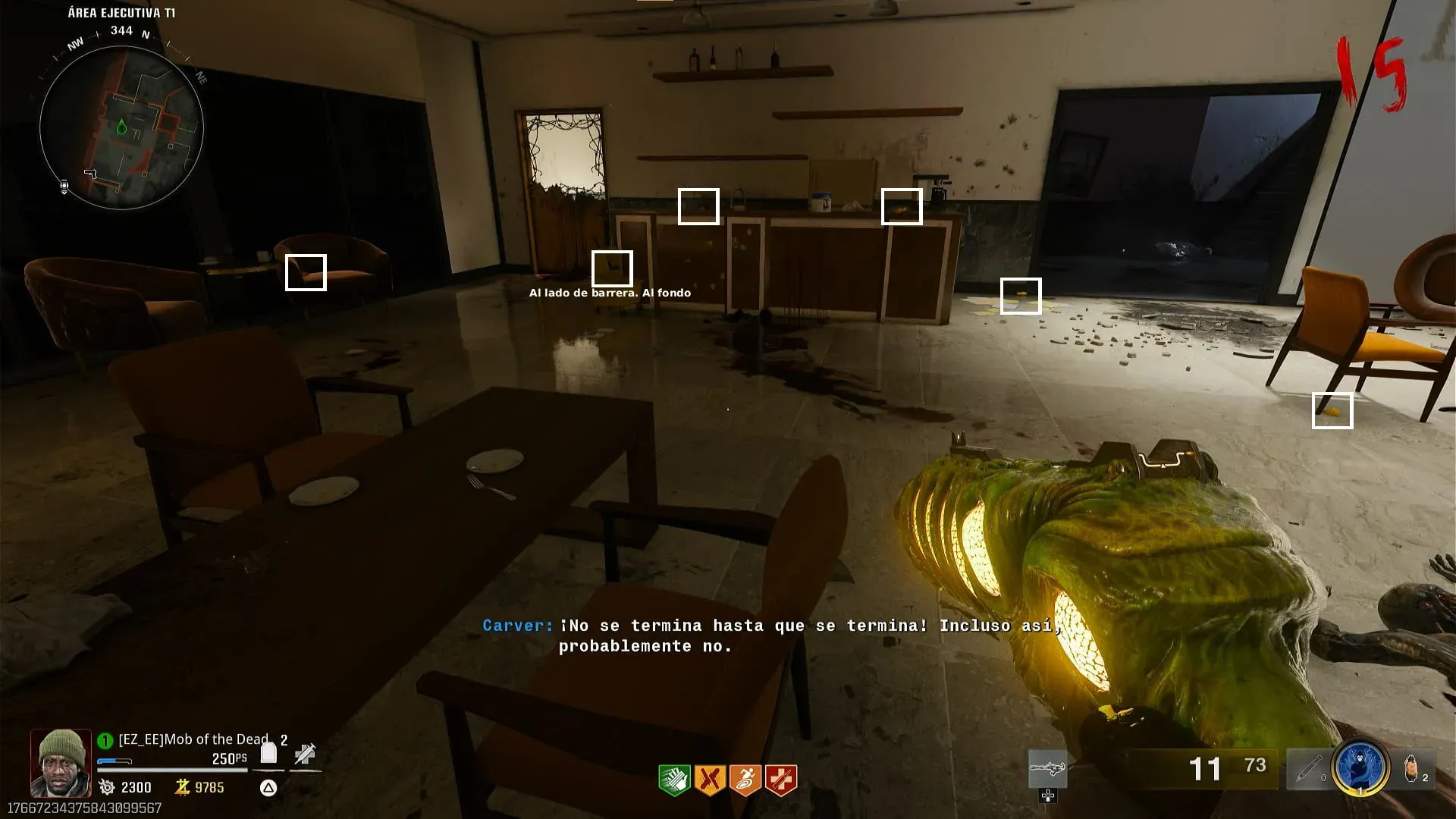 - Hay una cubeta de pollo frito ubicado en un bar de Area Ejecutiva T1. Si el jugador le lanza una granada letal, la cubeta saldrá volando al mostrador junto con 6 piezas de pollo que tendrás que buscar alrededor de esta zona.