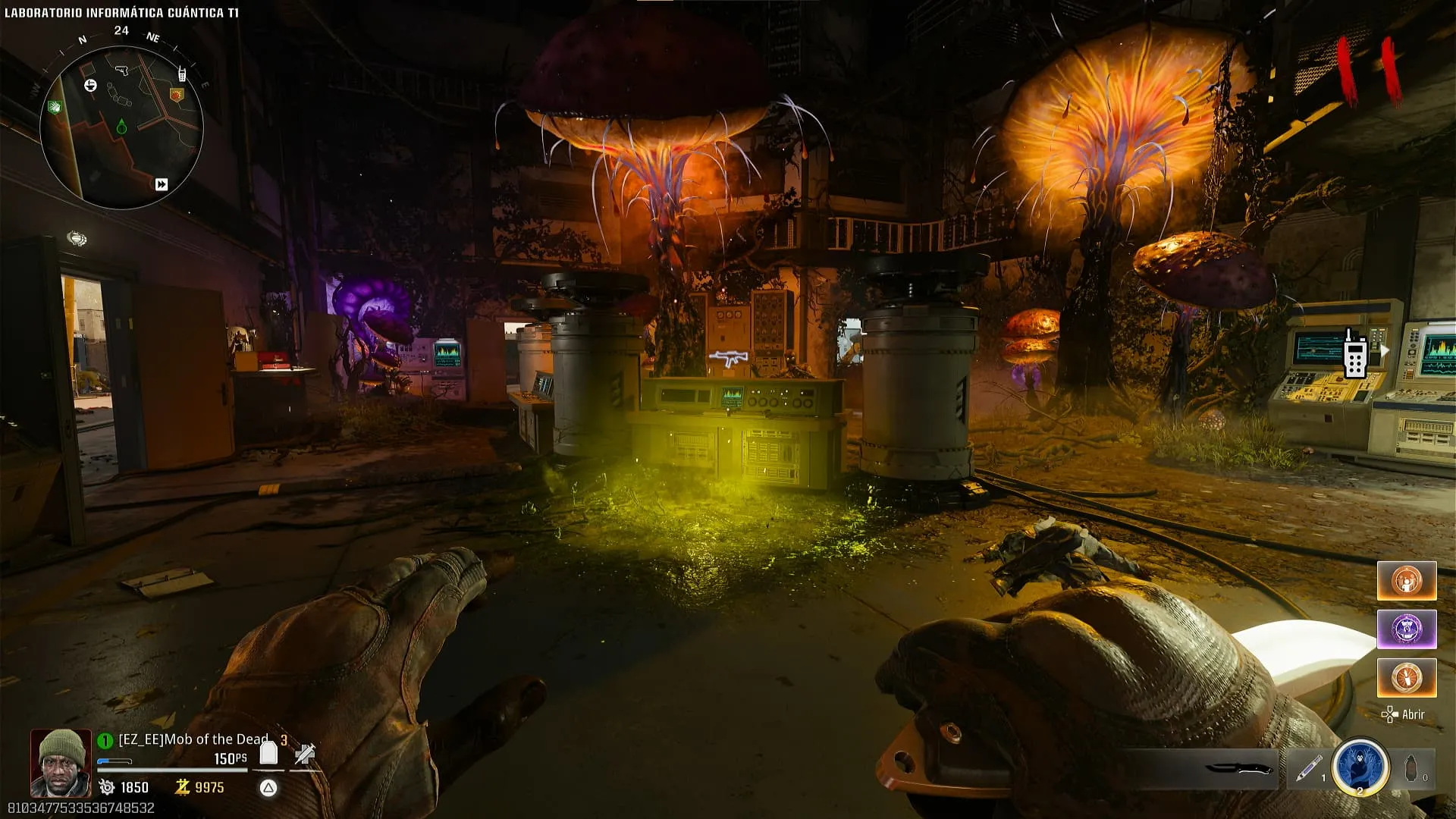 - Activa Pack-A-Punch y ve a Análisis Mutante T1 en donde se encontrarán dos monitores con estática que durante un breve tiempo mostrarán una palabra que debes anotar.