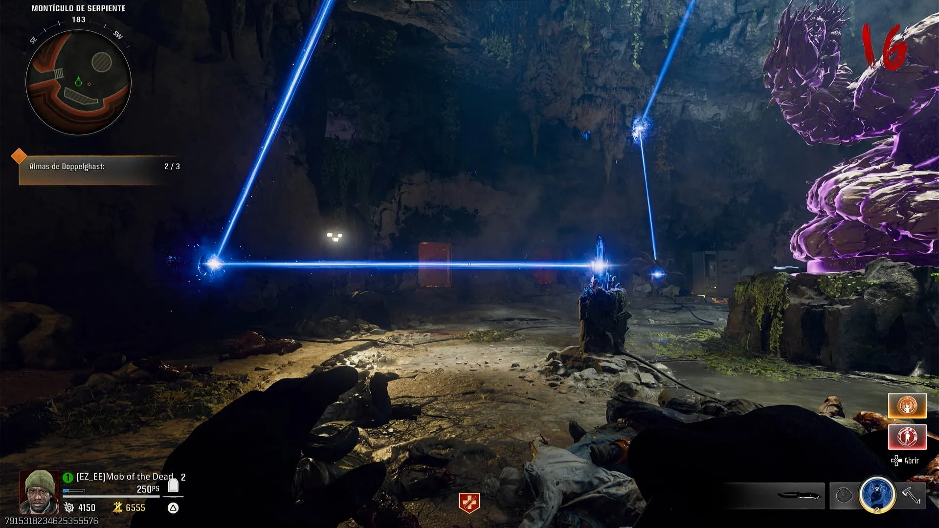 - Vuelve a la zona secreta que recién fue desbloqueada e interactúa con el dispositivo para que se active un rayo que saldrá del cristal azul