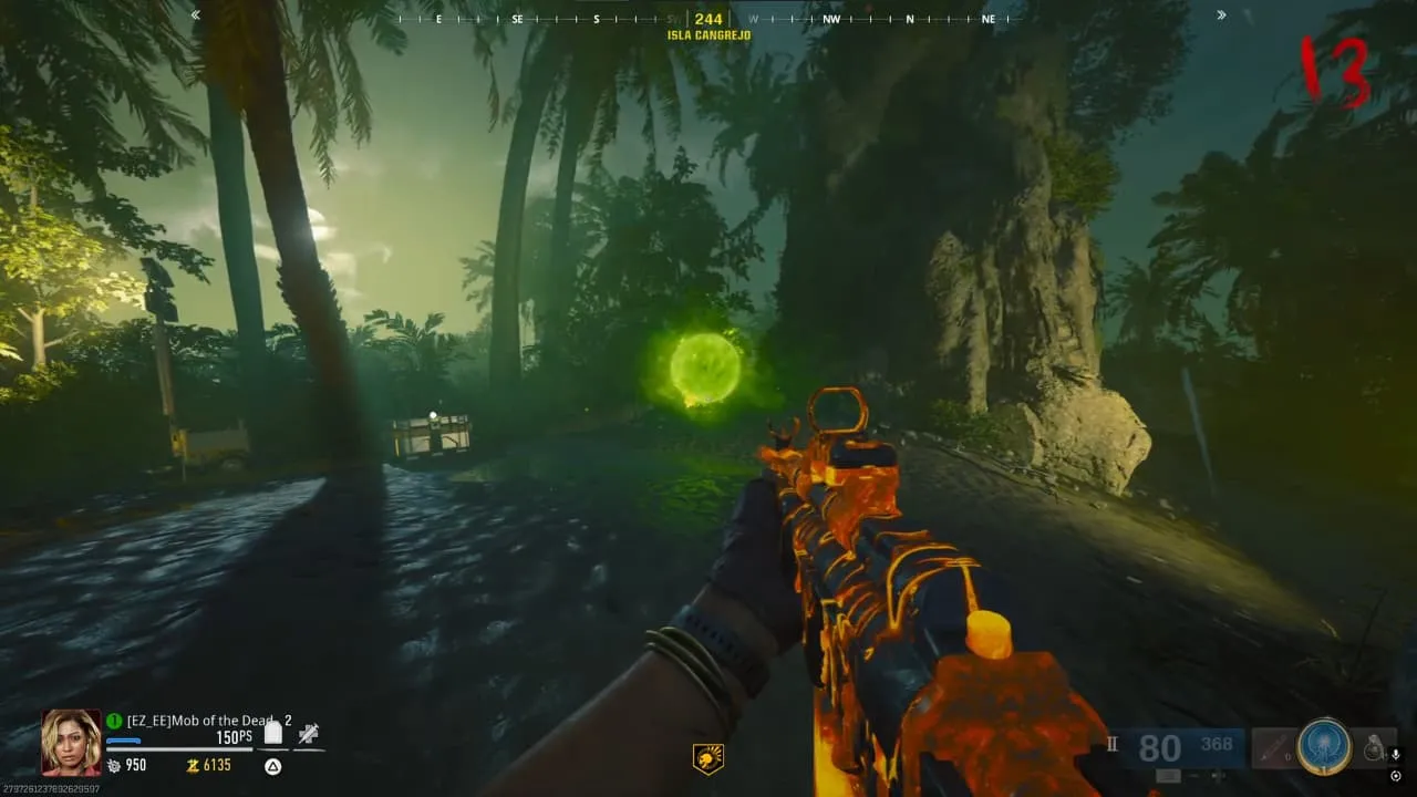 Al ir a la isla, encontrarás un orbe que, al interactuar con él, hará que aparezca una horda de zombies.