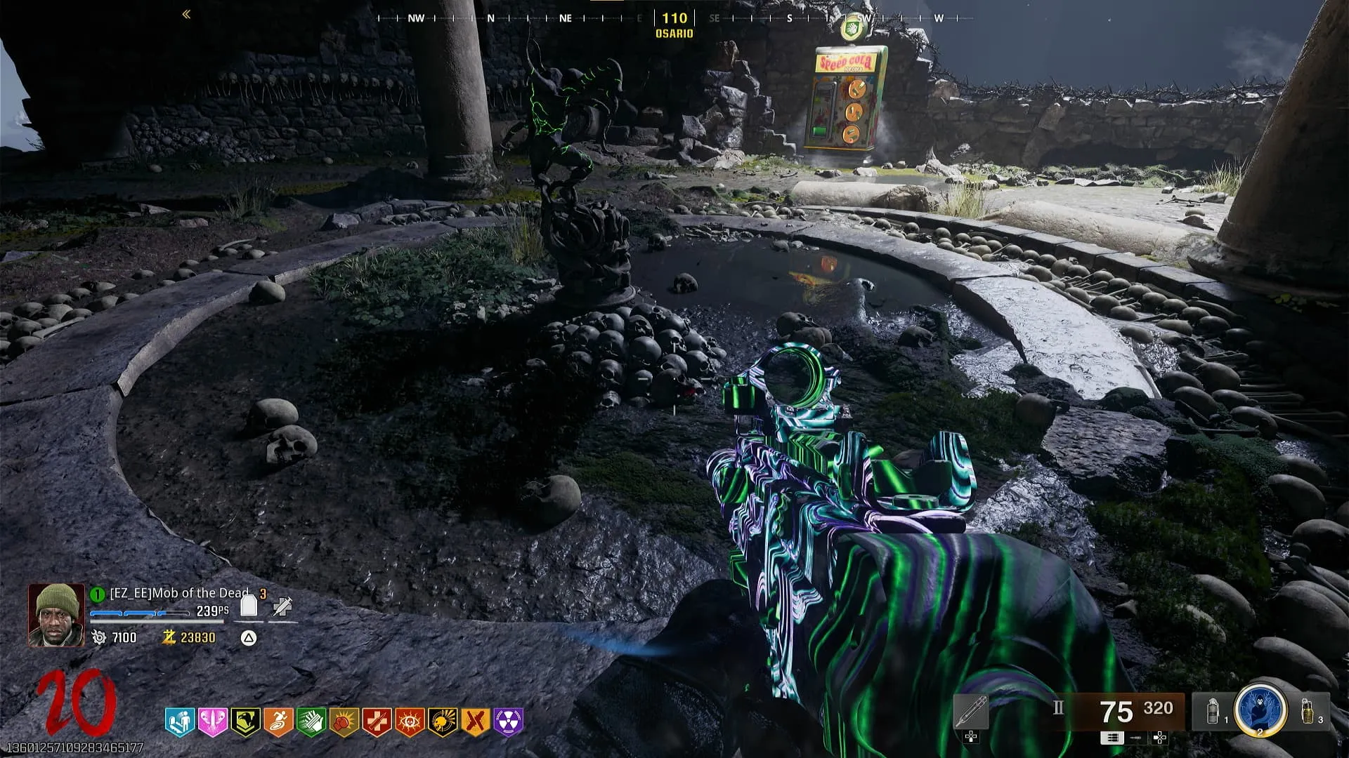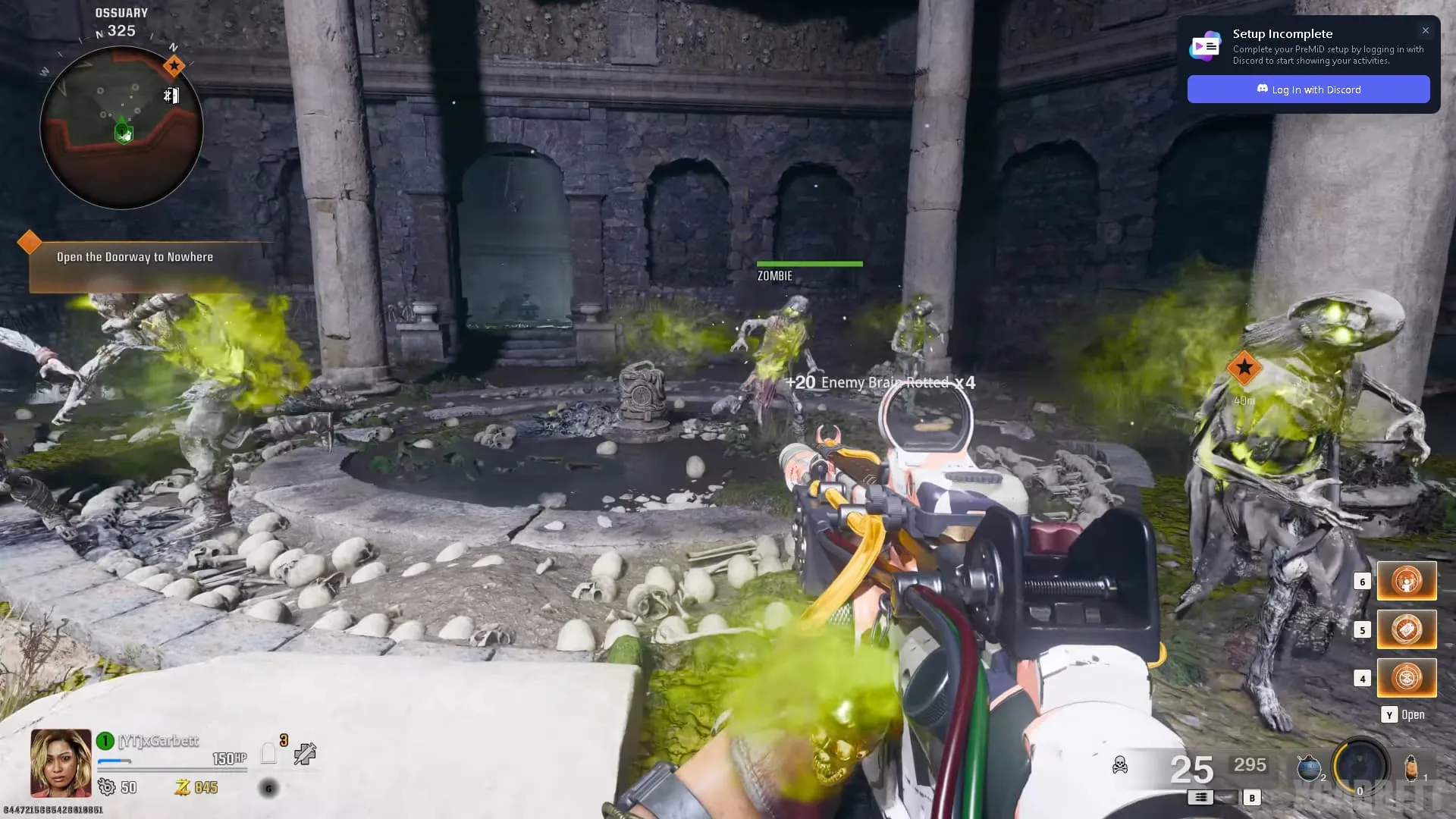 - Hay cuatro cráneos marcados con una X repartido por todo el Osario, debes dispararles rápidamente con el arma que tiene composición cerebral.