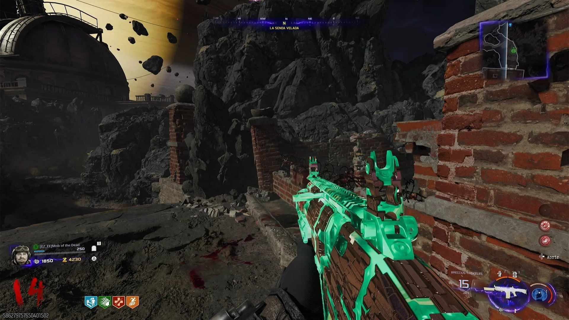 2. Busca 5 cráneos repartidos por todo el mapa, dispárale a cada uno para que sus ojos se prendan y luego interactúa para recogerlos.