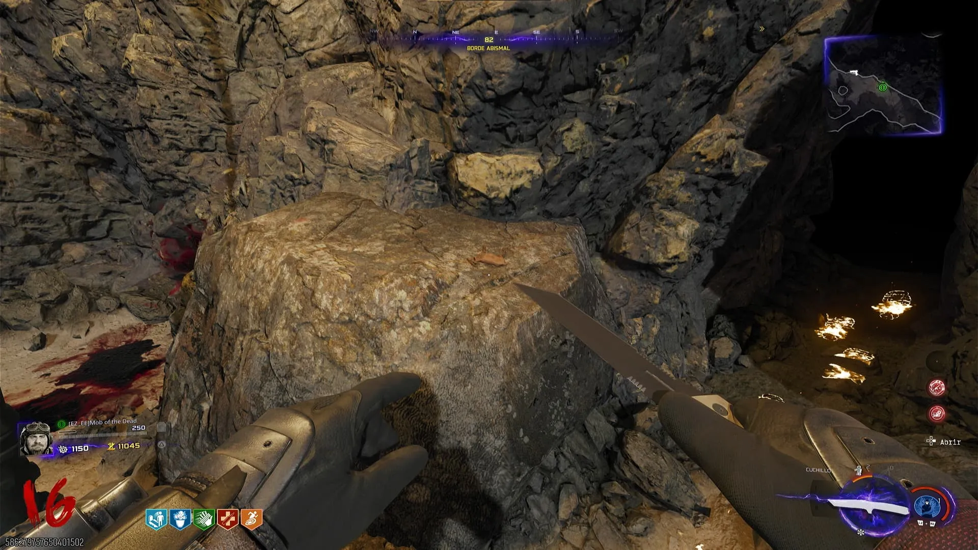 - Interactuando con el Altar hará que aparezcan saqueadores. sigue moviéndote por la cueva matándolos hasta que empiece otra cinemática. Al terminar, serás llevado nuevamente al mapa y se te darán varias recompensas, entre esas una escopeta dorada.