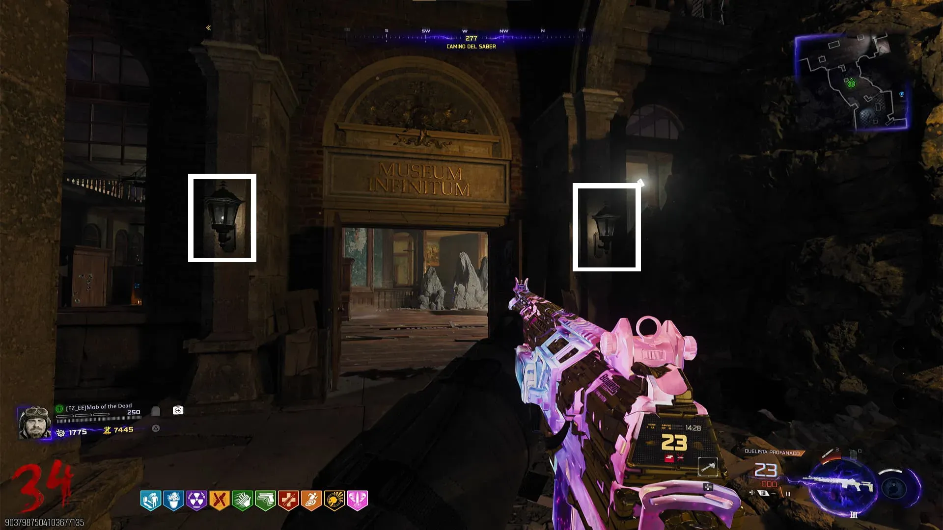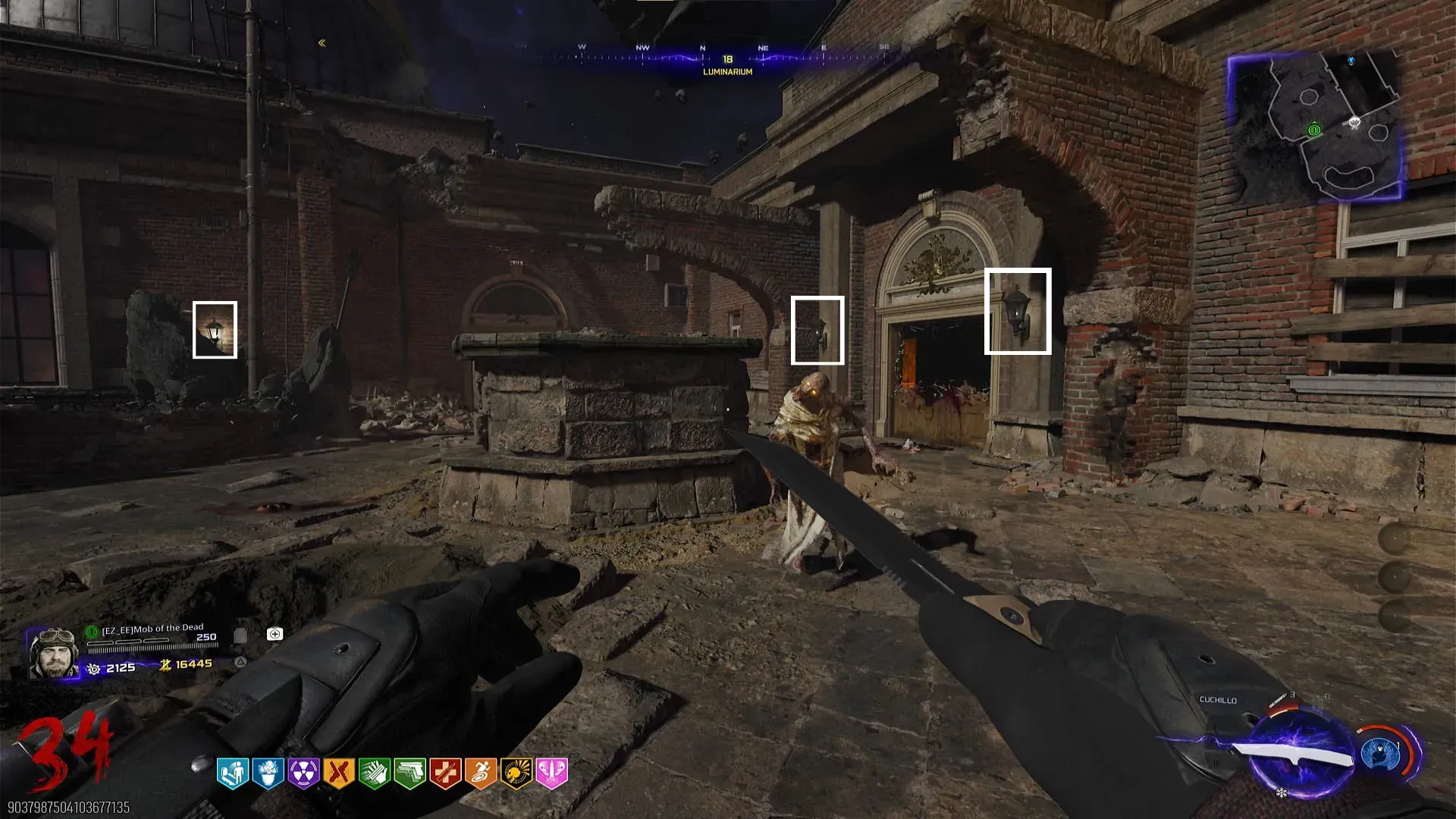 1. Consigue un orbe blanco en una de las 9 linternas repartidos por el mapa (Todas las posibles ubicaciones mas abajo). Debes encontrar y apuntarla por varios segundos usando tu arma. Al hacerlo, el orbe empezará a orbitar alrededor del jugador y puedes lanzarlo usando el botón de melee.
