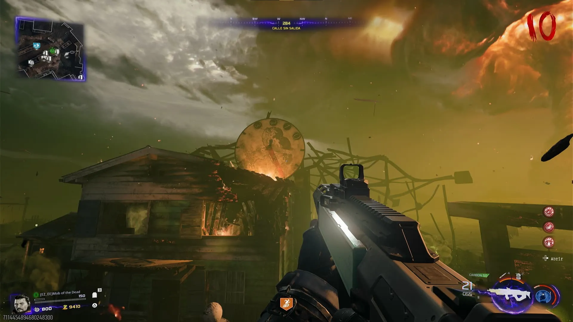1. En Nuketown Destruido, mira hacia el gran reloj y utilizando un arma de balas dispárale a las manecillas del reloj para cambiar la hora a 1:15 (manecilla blanca en el 1 como si fuera un reloj análogo real, lo mismo para la manecilla roja en el 15. Usa la imagen de abajo como referencia si tienes problemas).