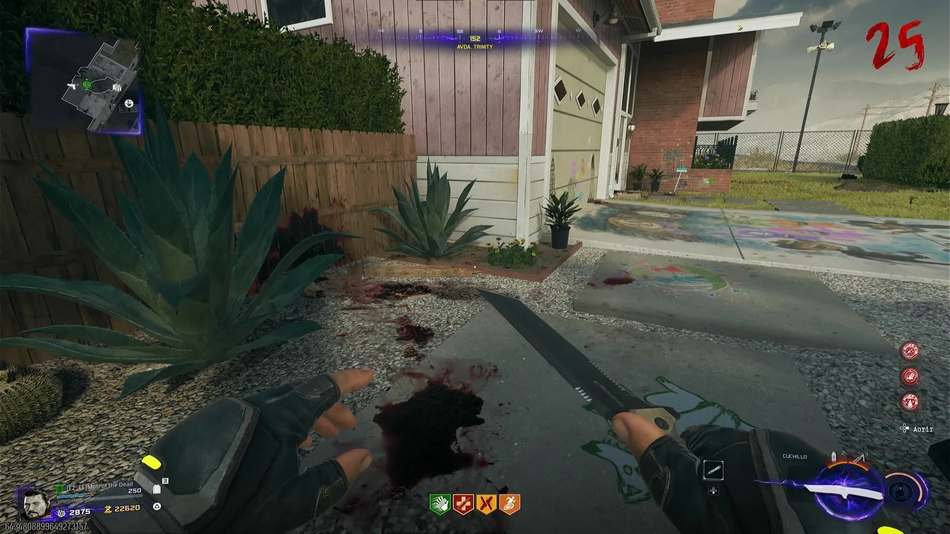 El sexto objeto es un collar de perro cerca de la puerta del garaje que se abre con el RC-XD en Avda. Trinity de Nuketown Normal, en el suelo de un pequeño jardín.
