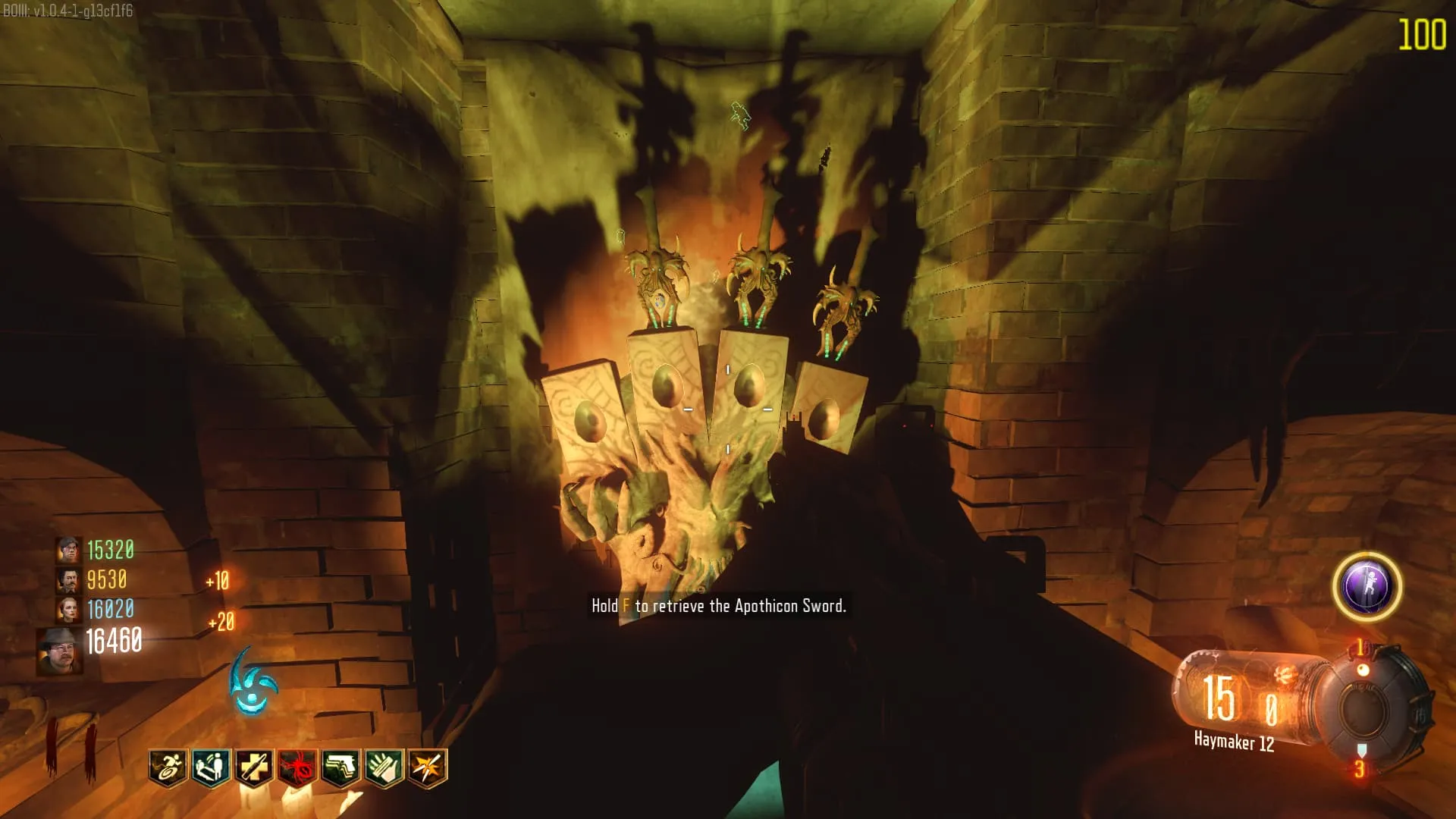 2. Para este Quest, cada jugador debe crear y mejorar su propia Espada de Apothicon, para comenzar, deben buscar unos símbolos repartidos por todo el mapa y la unica forma de verlos es yendo por el tren. Estos símbolos debes colocarlo en el subsuelo a la izquierda de «Widow’s Wine».