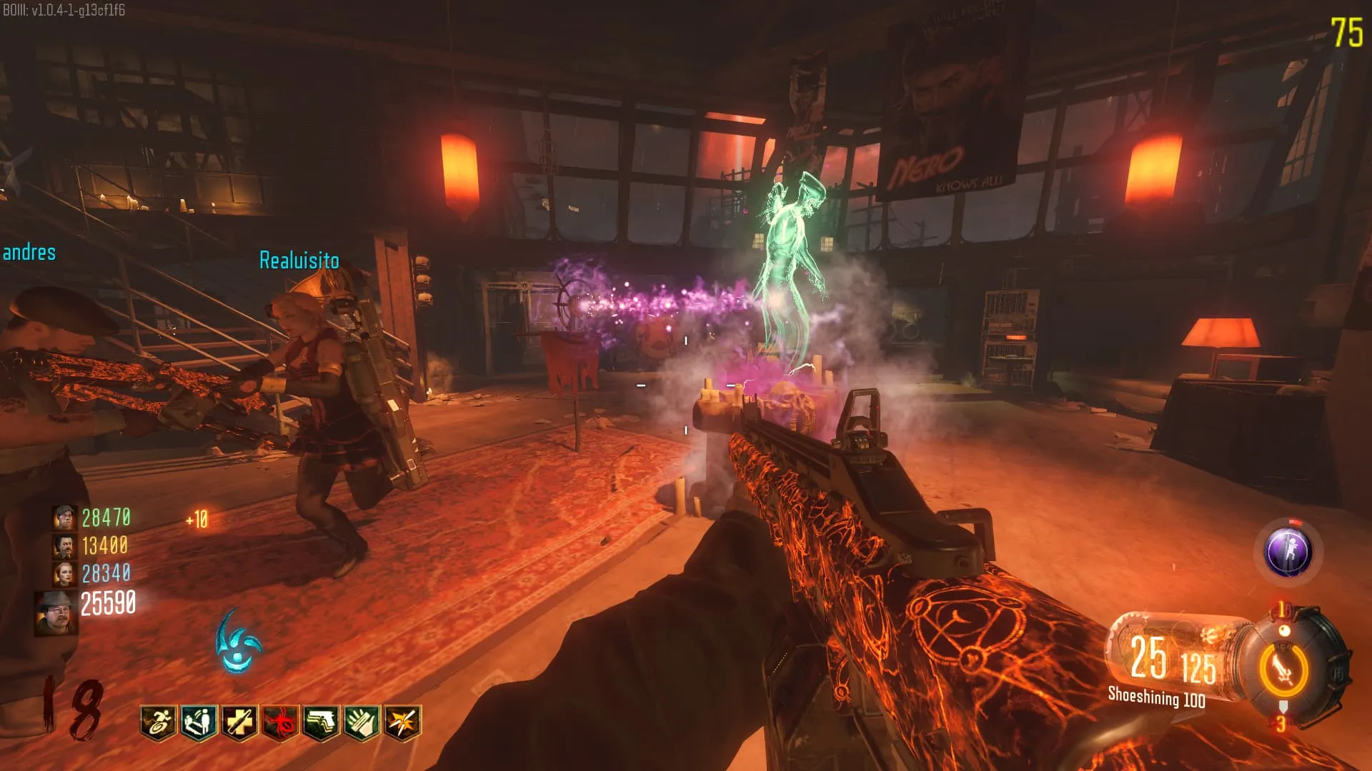 1. Al haber llevado la bandera a las todas las zonas de rituales, podrás activar la boss fight, debes ir a la zona de Pack-A-Punch y veras a 4 Keepers. Cada jugador debe interactuar con un Keeper y se activara la boss fight.