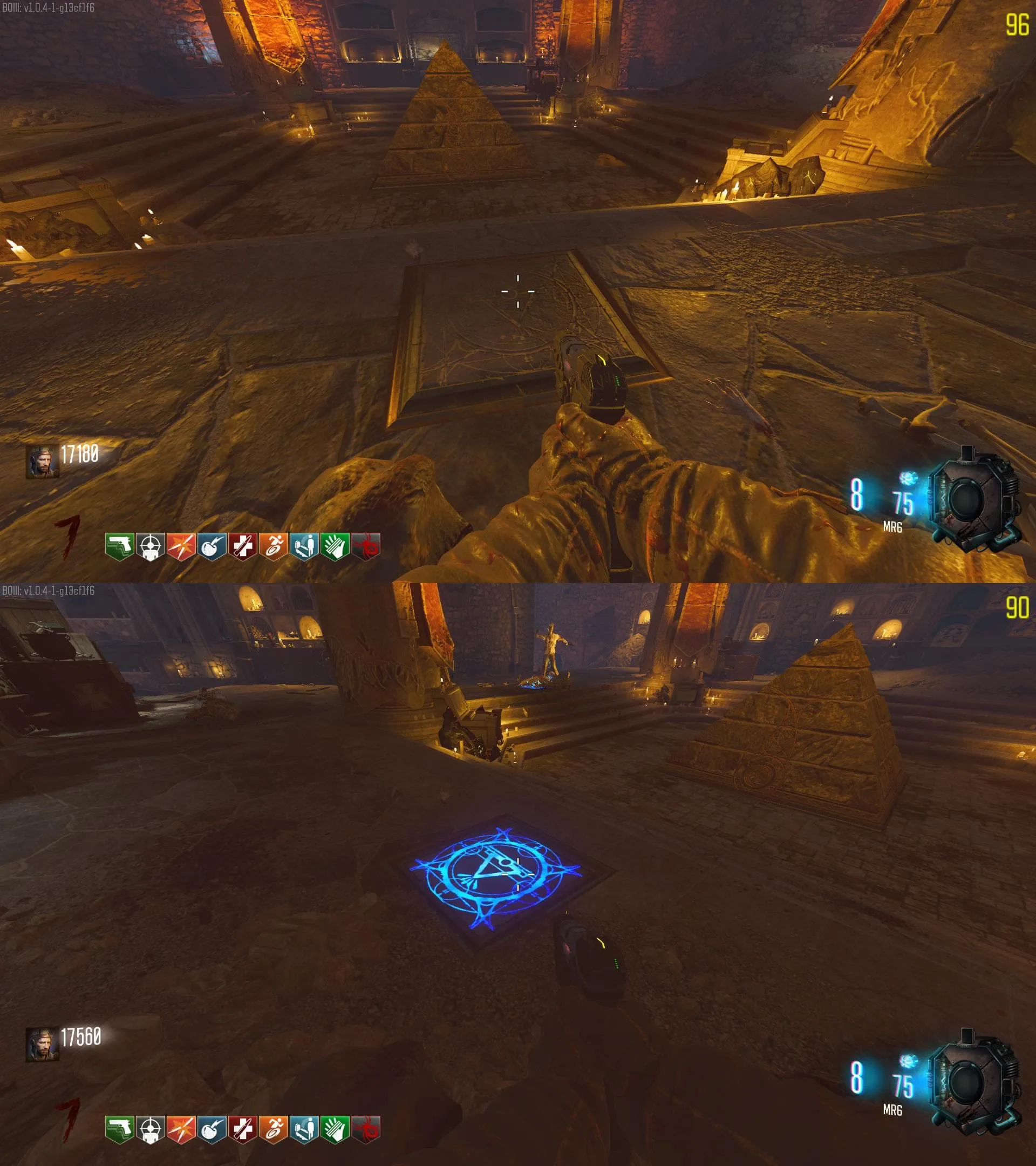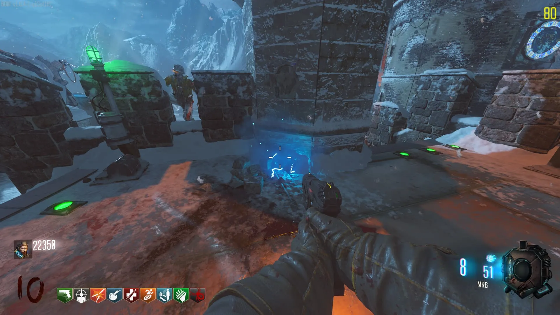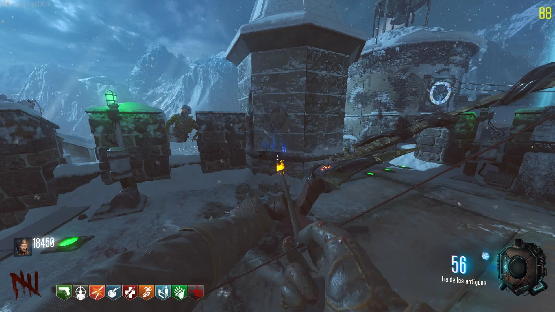 - Agarra la Flecha Electrica y dirígete a la pirámide, y pon la flecha en el pedestal correspondiente al Arco Electrico. Debes matar 30 zombies dentro de esa zona y se te entregara el Arco Electrico.