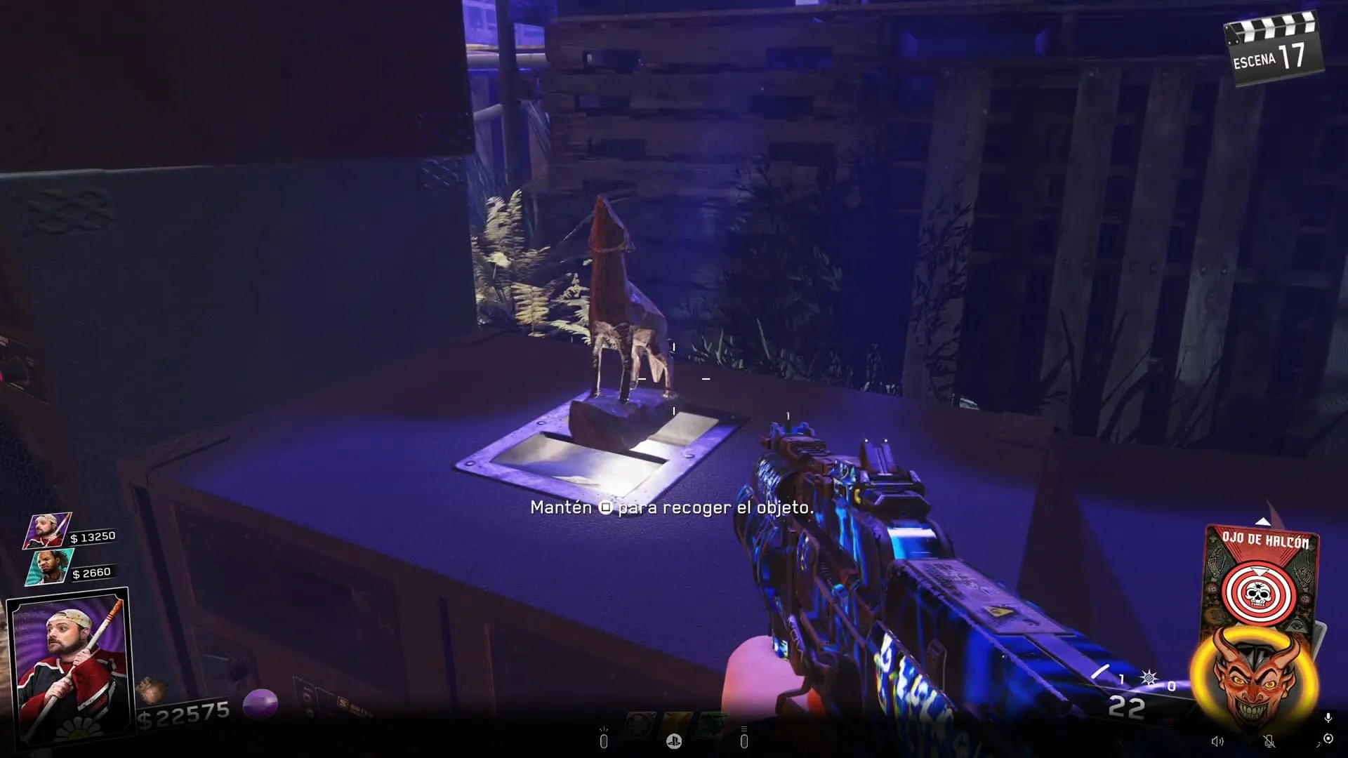 Al terminar de explotar los Zombies, podrás recoger la estatua interactuando con ella.