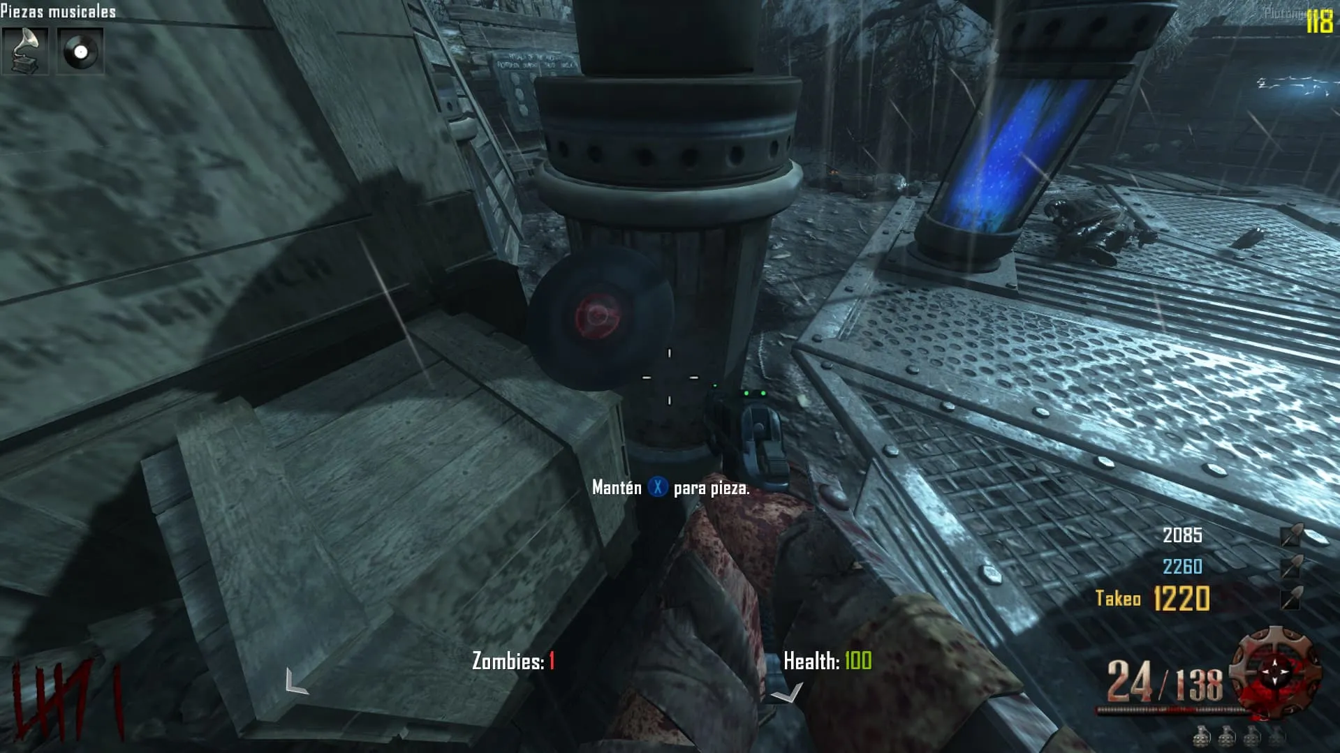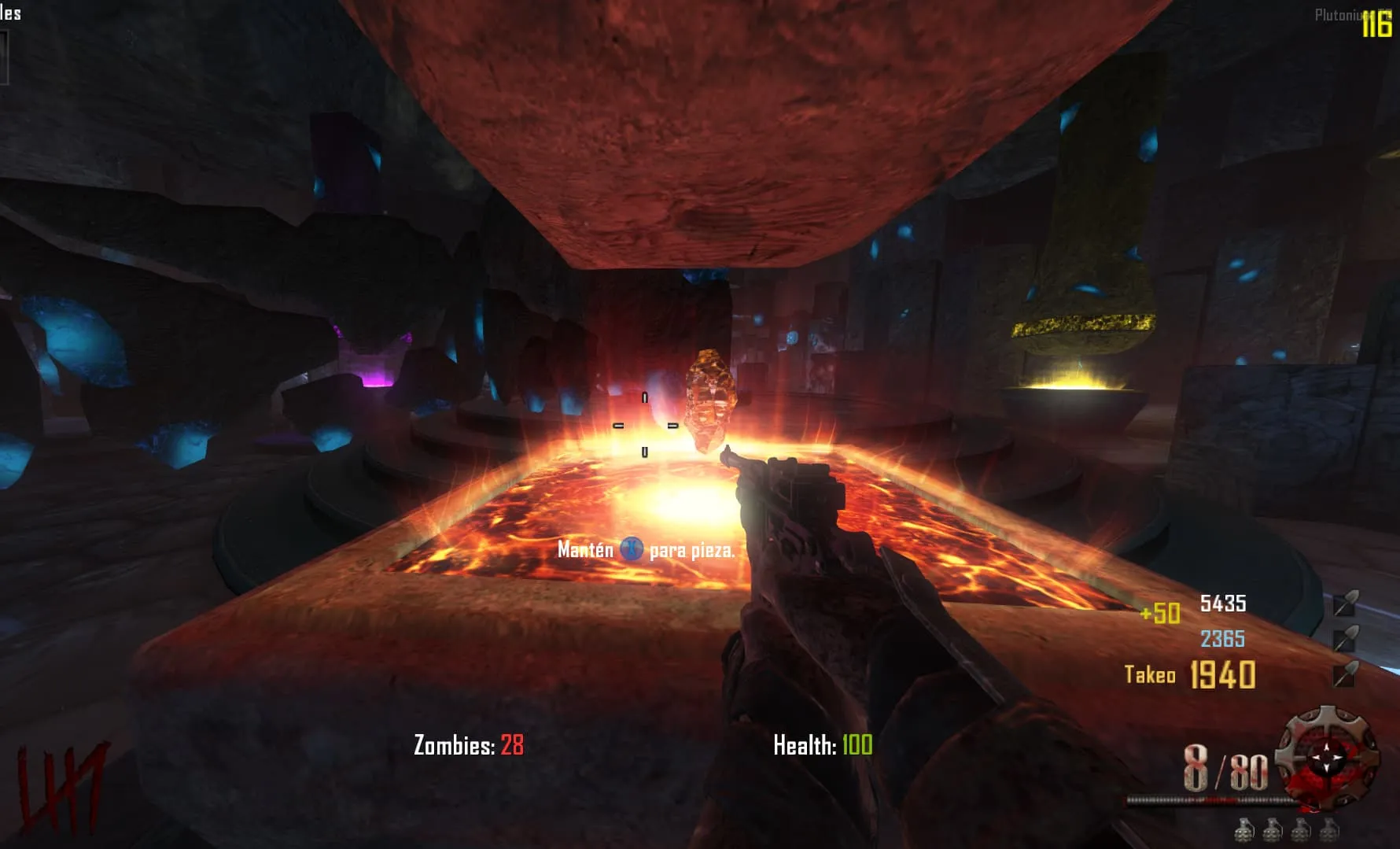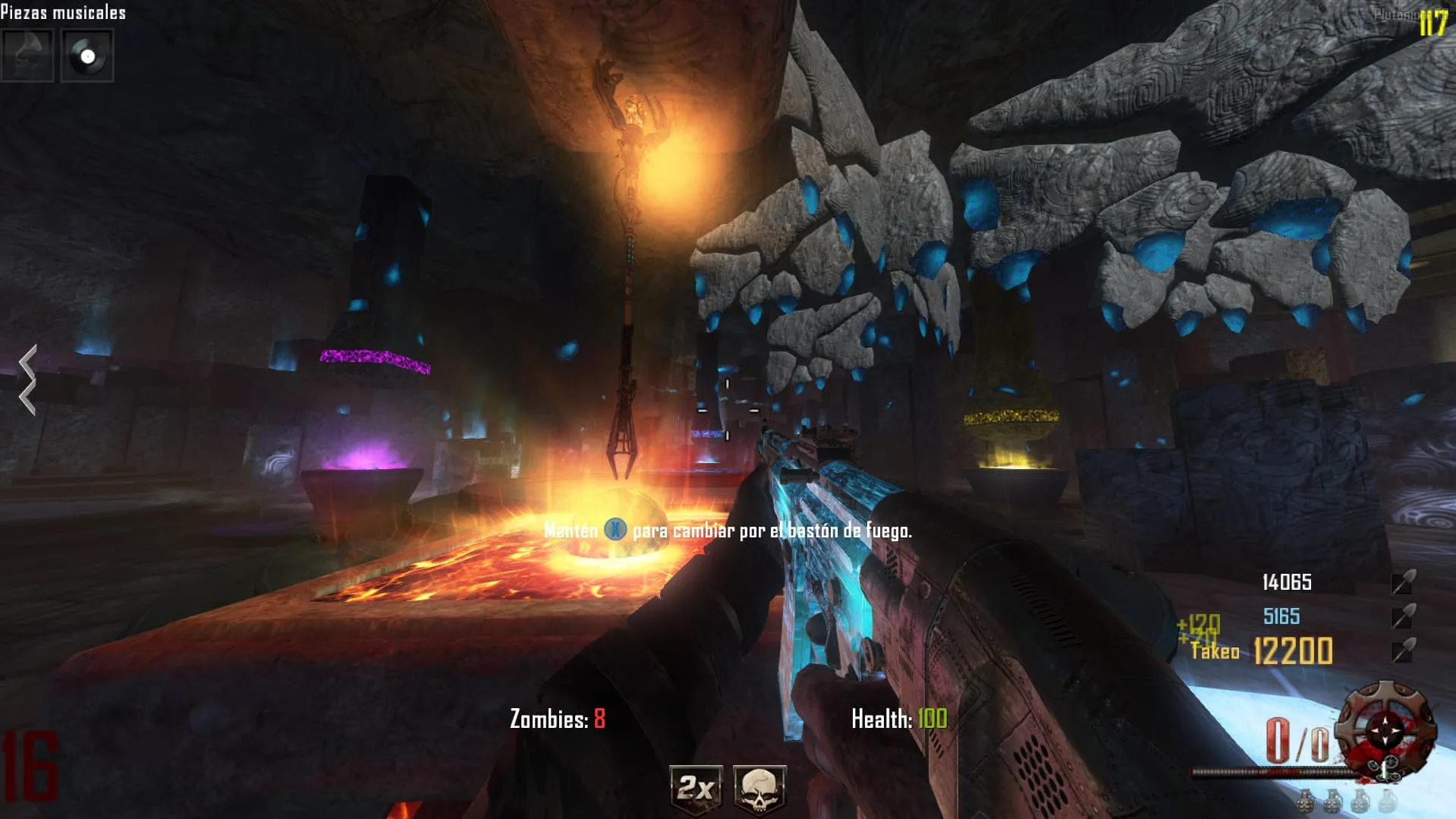 - Ve al «Crazy Place», coloca el baston de fuego en un pedestal y mata 20 Zombies en esa zona. Luego tendrás el baston mejorado y lo podrás agarrar.