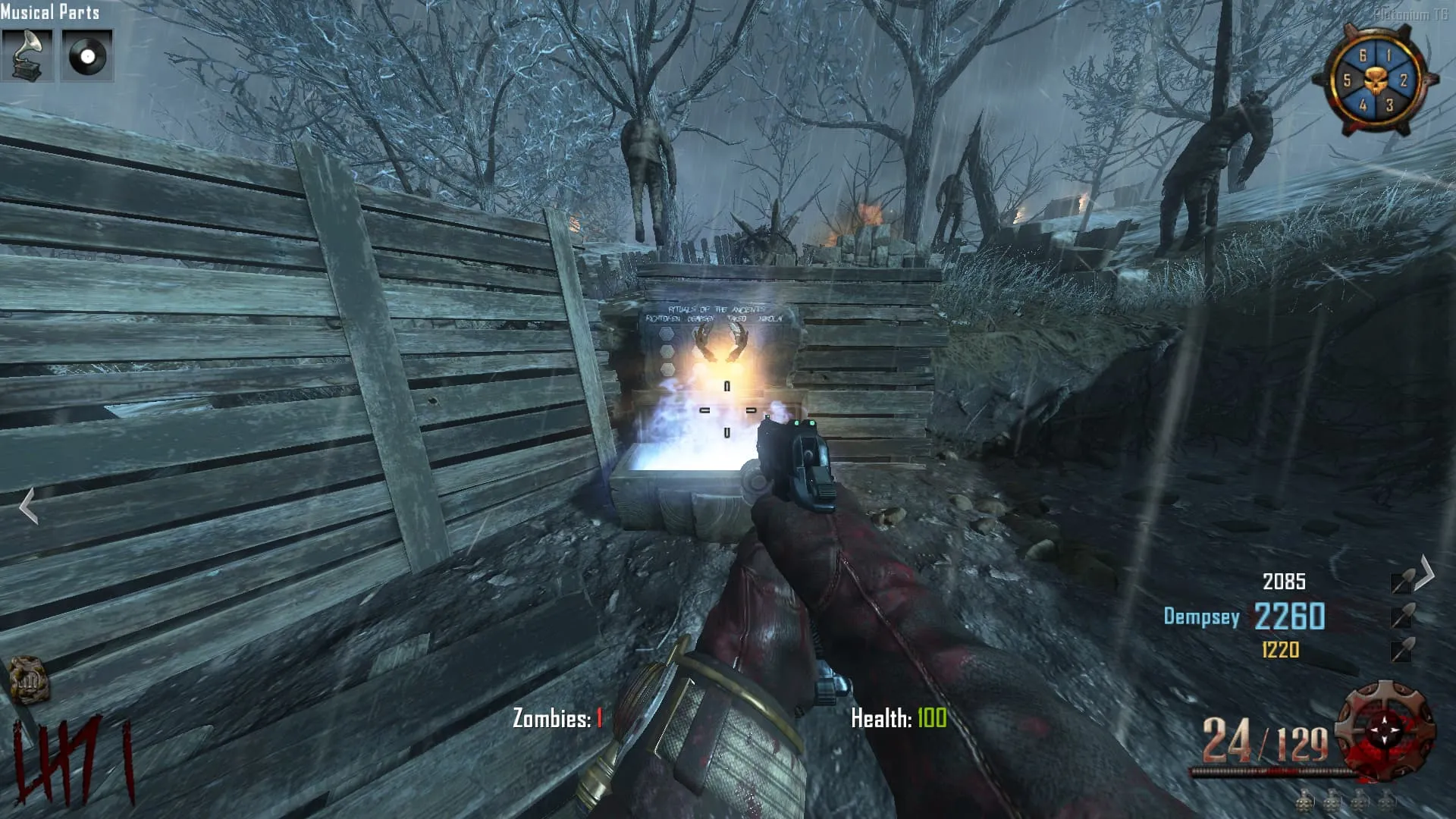 Alrededor de la Ronda 8, aparecerá un Panzer Soldat. Al matarlo soltara la pieza del baston de fuego
