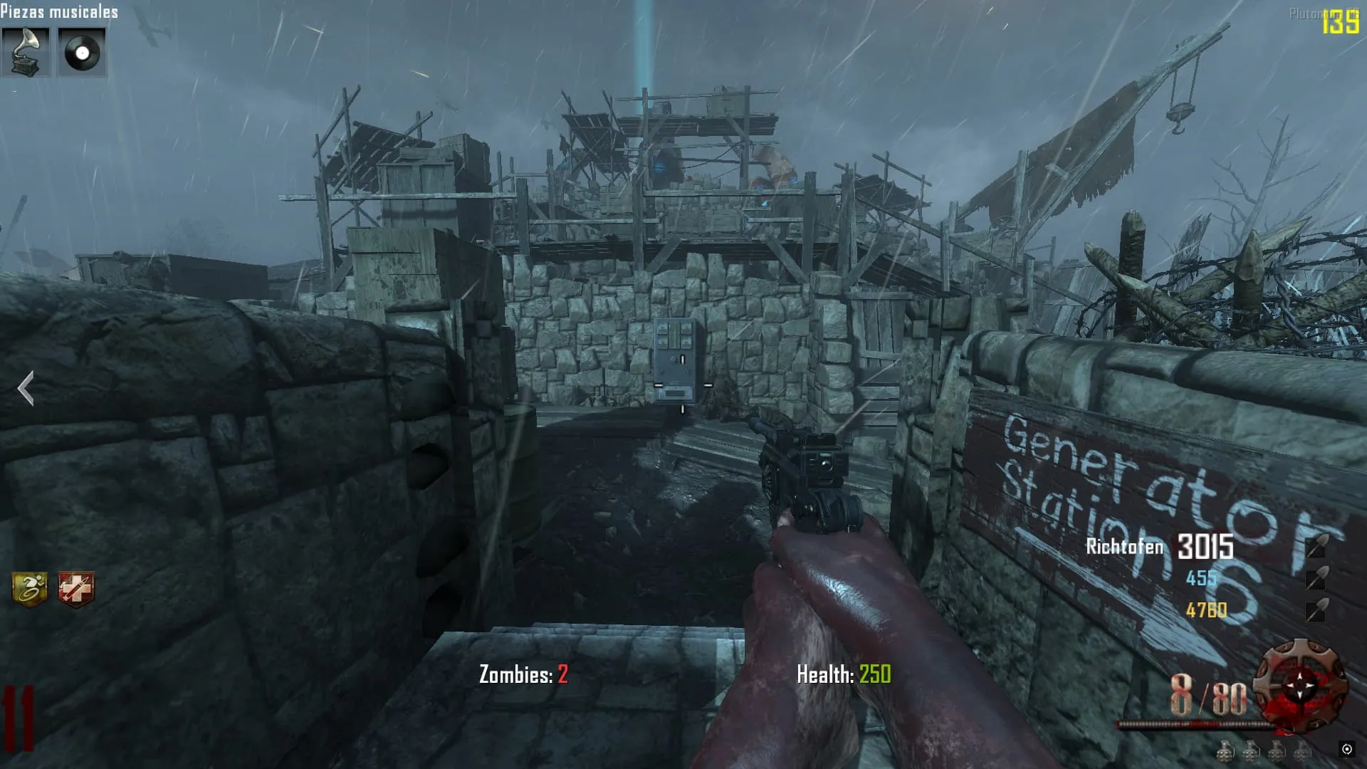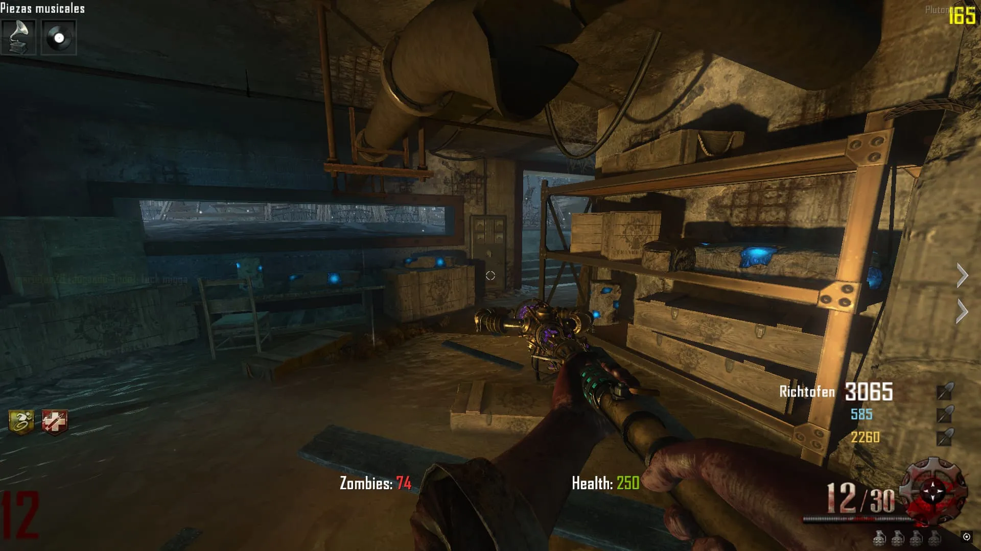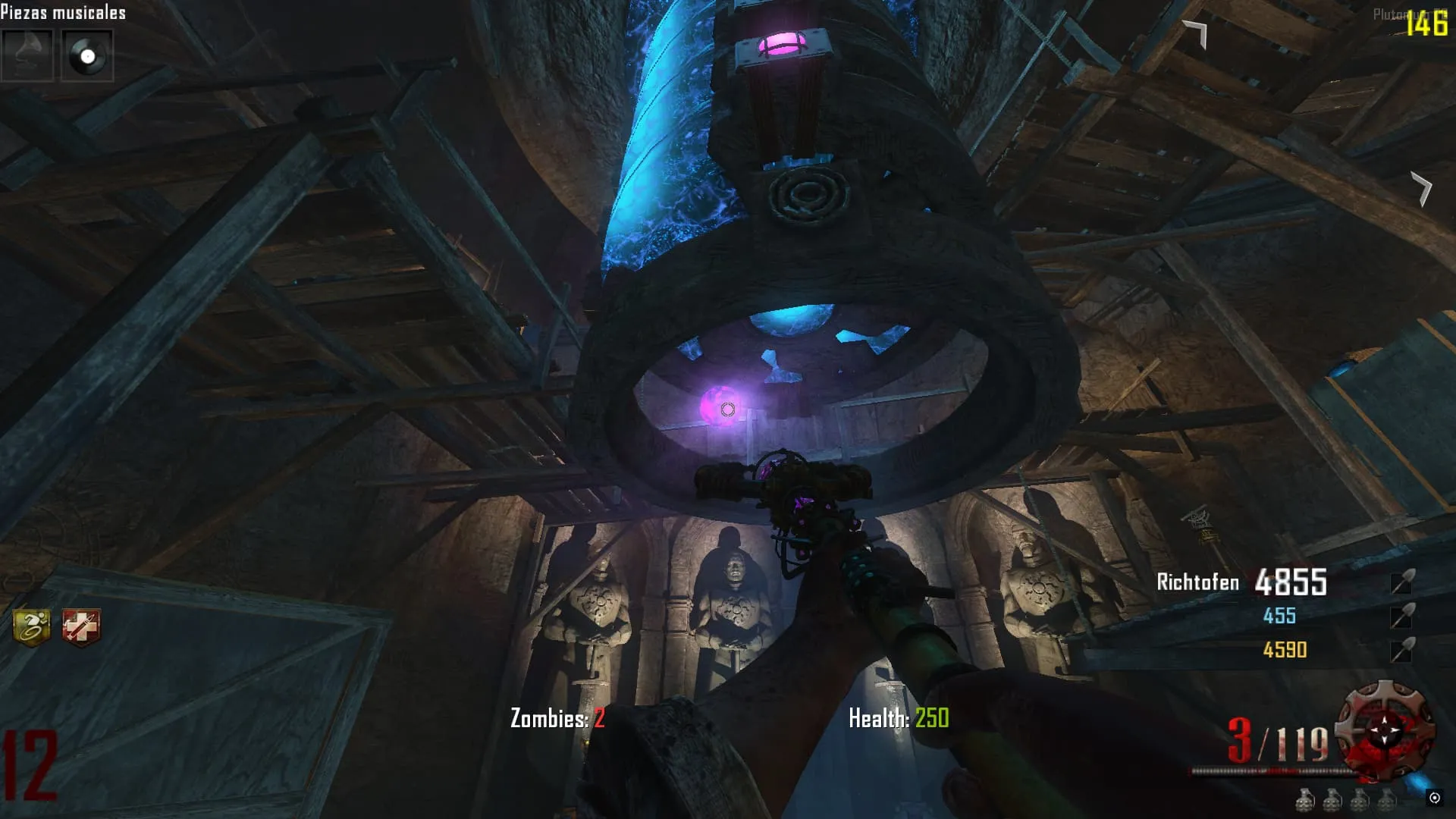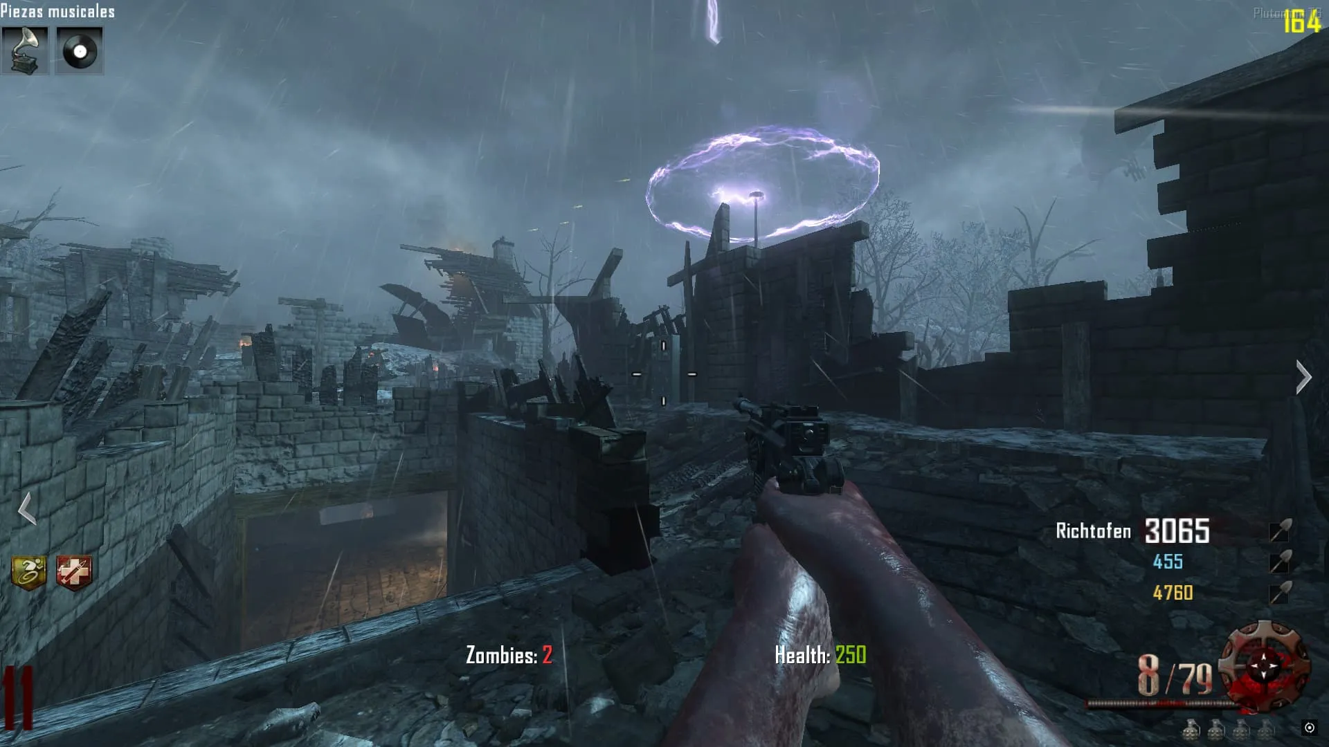 - Ve al «Crazy Place», coloca el baston eléctrico en un pedestal y mata 20 Zombies en esa zona. Luego tendrás el baston mejorado y lo podrás agarrar.