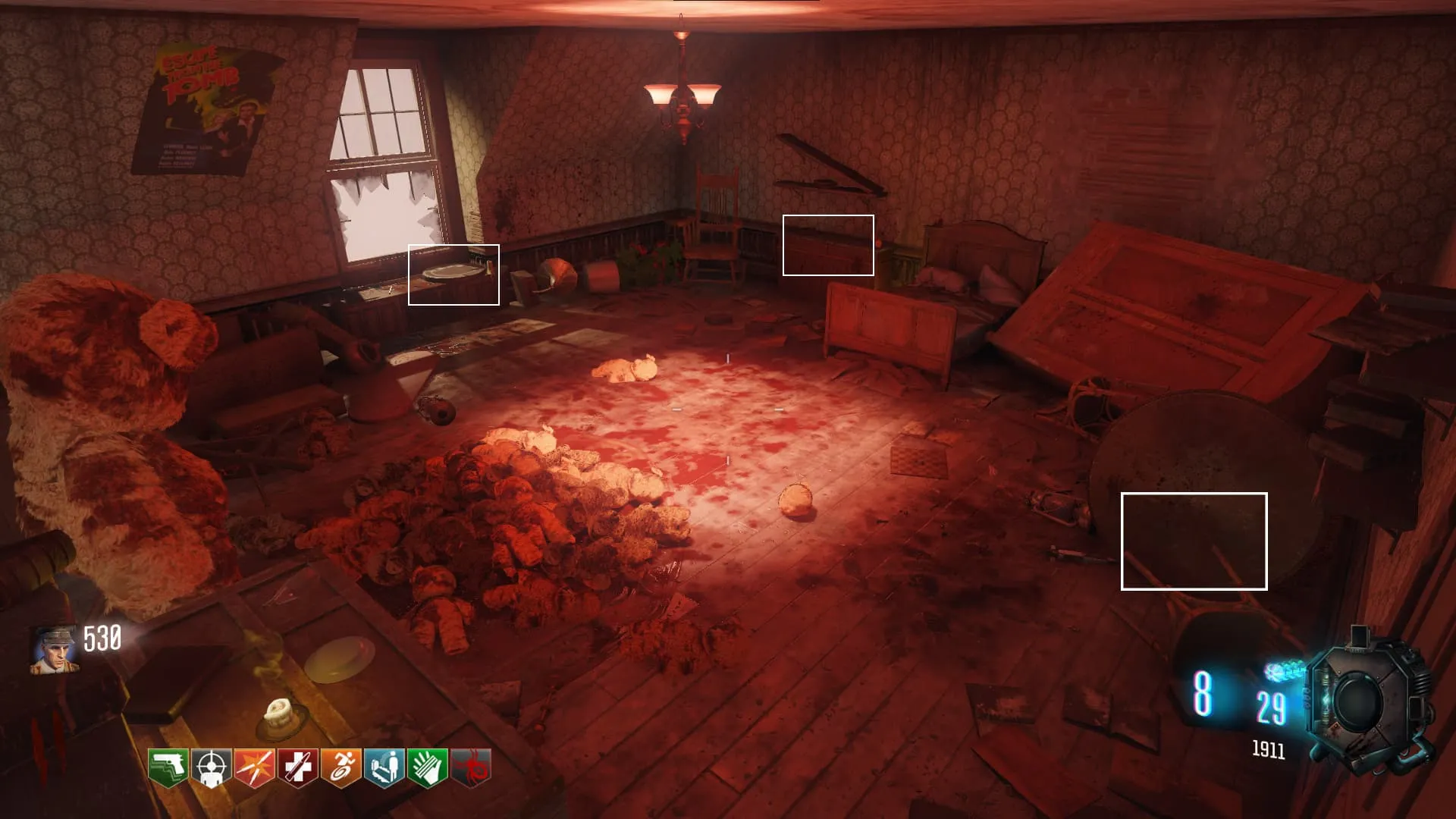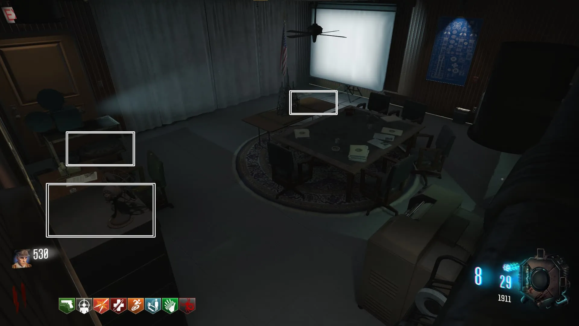 Cuando te teletransportes a la sala inicial hay chances de que te teletransportes a unas salas secretas, dentro de estas salas se encuentras unas cintas que puedes agarrar interactuando con ellas. Al tenerla vuelve a la sala del Pack-A-Punch e interactúa con el proyector que se encuentra en esa sala te dejará introducirla y se reproducirá una película conteniendo imágenes de la historia del modo