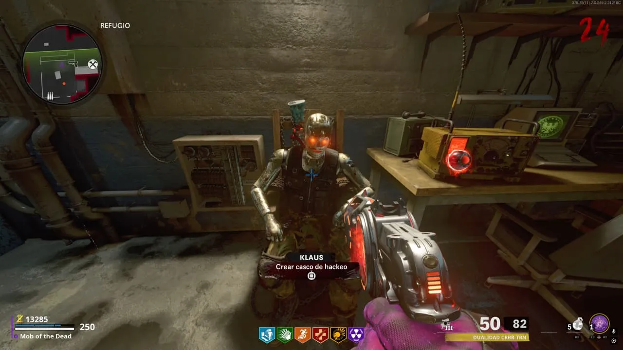 1. Construye el Casco de hackeo para Klaus, este se consigue disparándole a tres piezas con el CRBR-(U)S.
