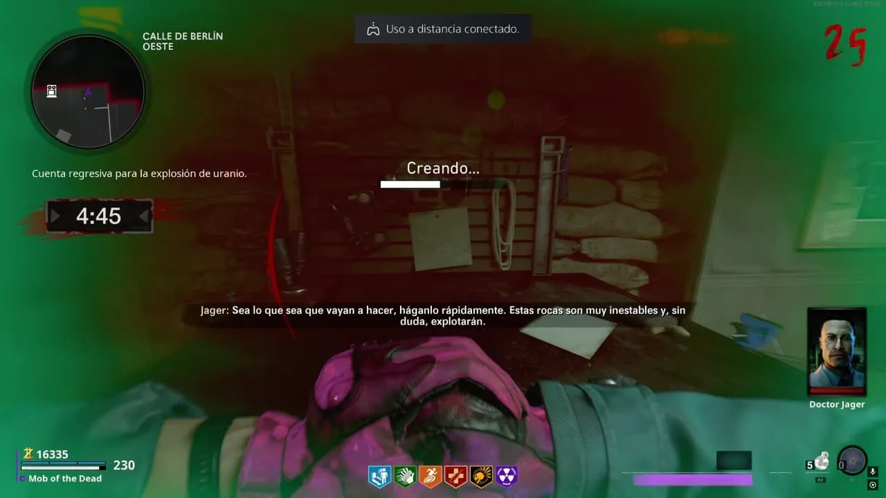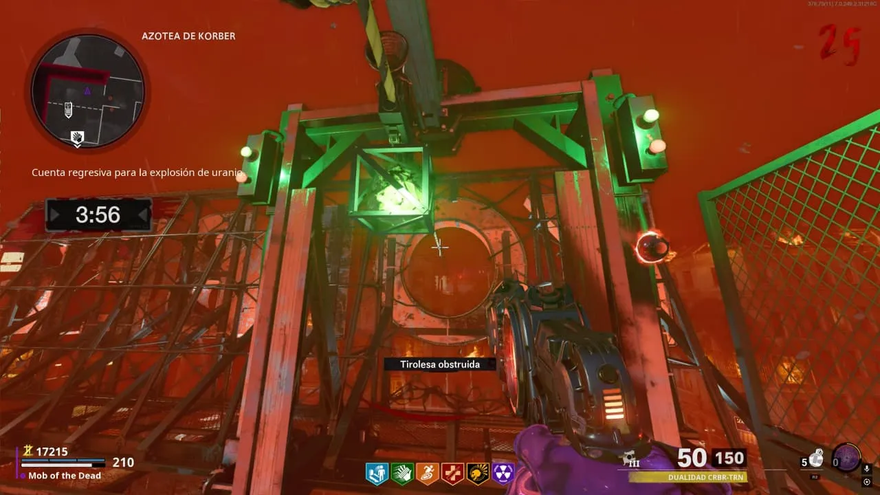 Debes llevar la roca de uranio de la mesa de trabajo a la tirolesa que lleva de Azotea de Korber (Speed Cola) a Penthouse Destruido (Quick Revive)