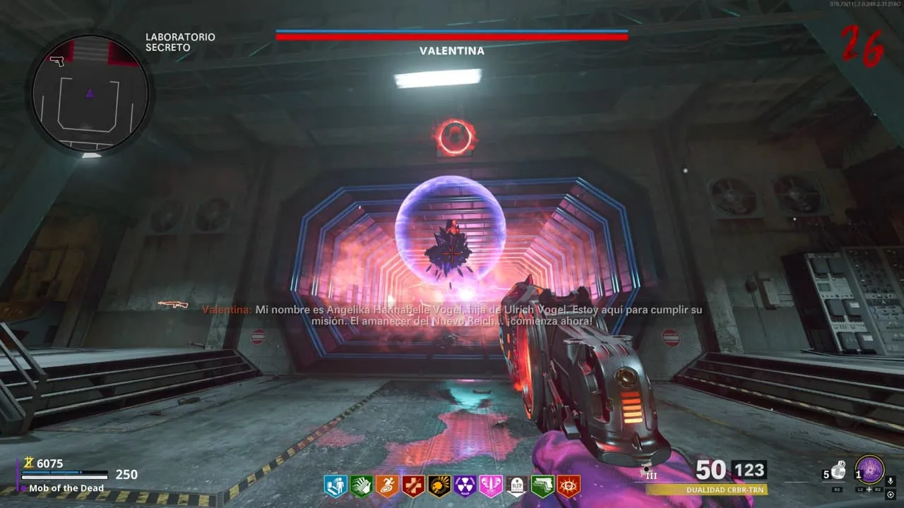 1. BOSS FIGHT. Esta comenzara en el Laboratorio Secreto, mientras le hagas daño esta usara una variedad de ataques y cambiara de posiciones por el mapa, simplemente dispárale a su escudo hasta que se rompa y luego a ella con cualquier arma.