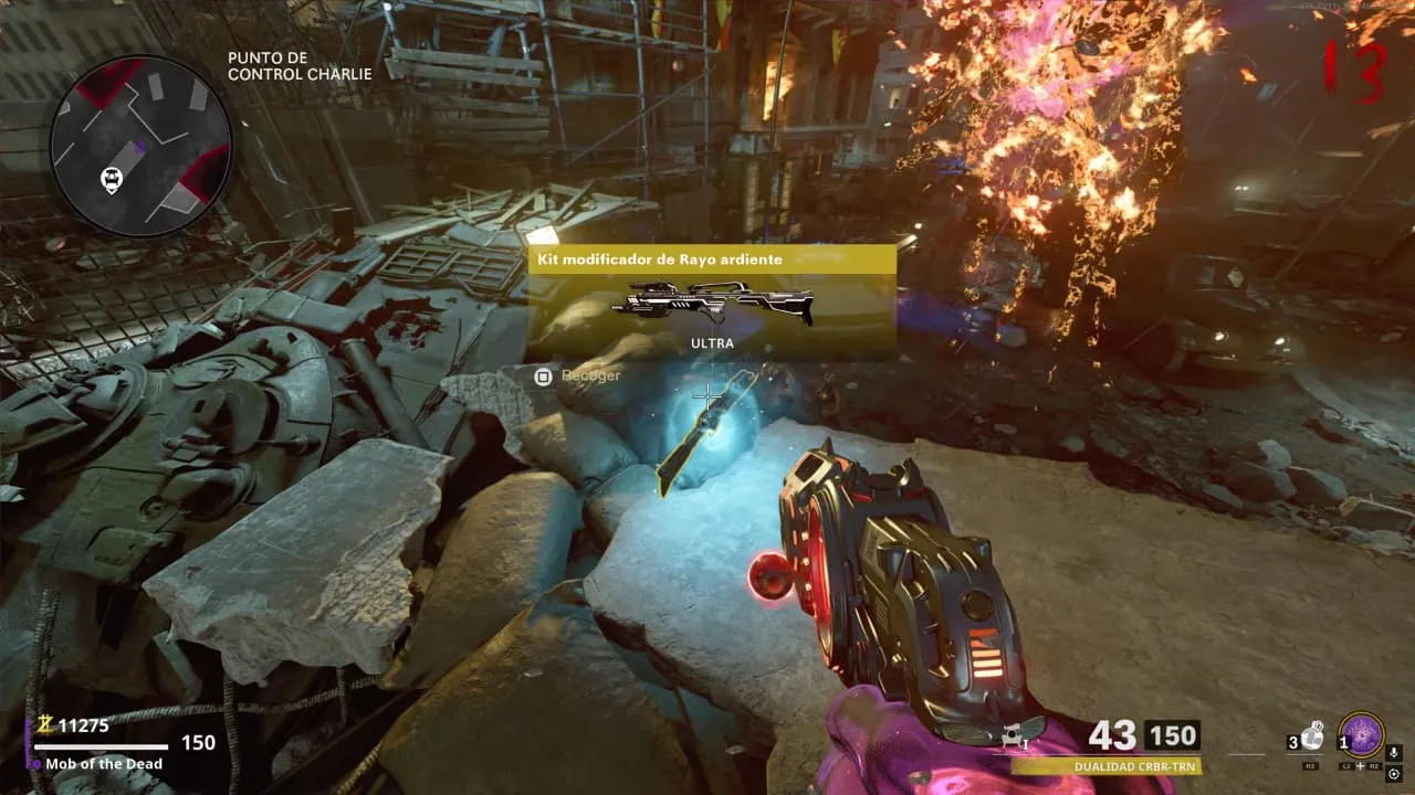 1. Consigue la mejora de la CRBR-(U)S Rayo Ardiente, esta se consigue matando Zombies hasta que alguno la suelte.
