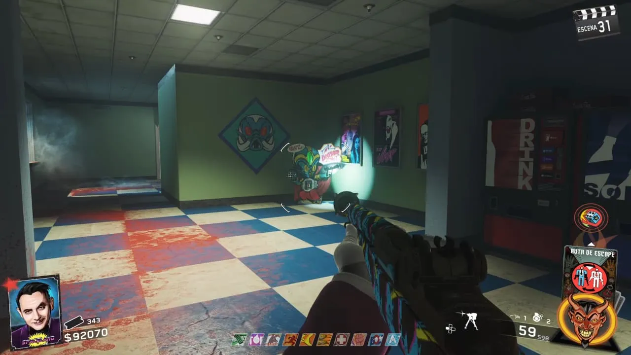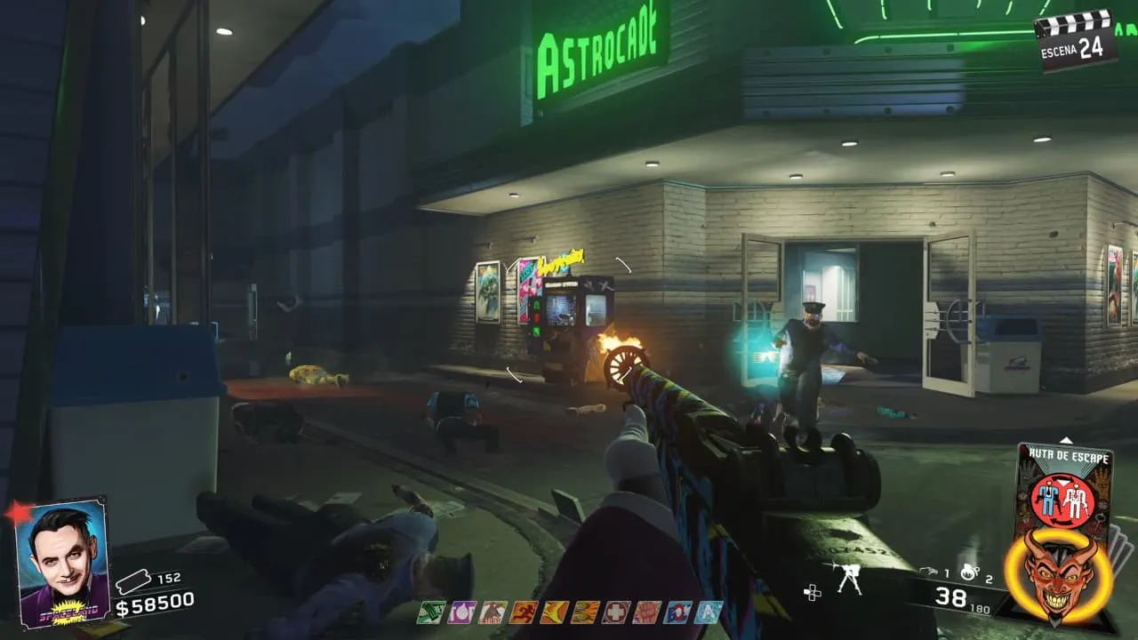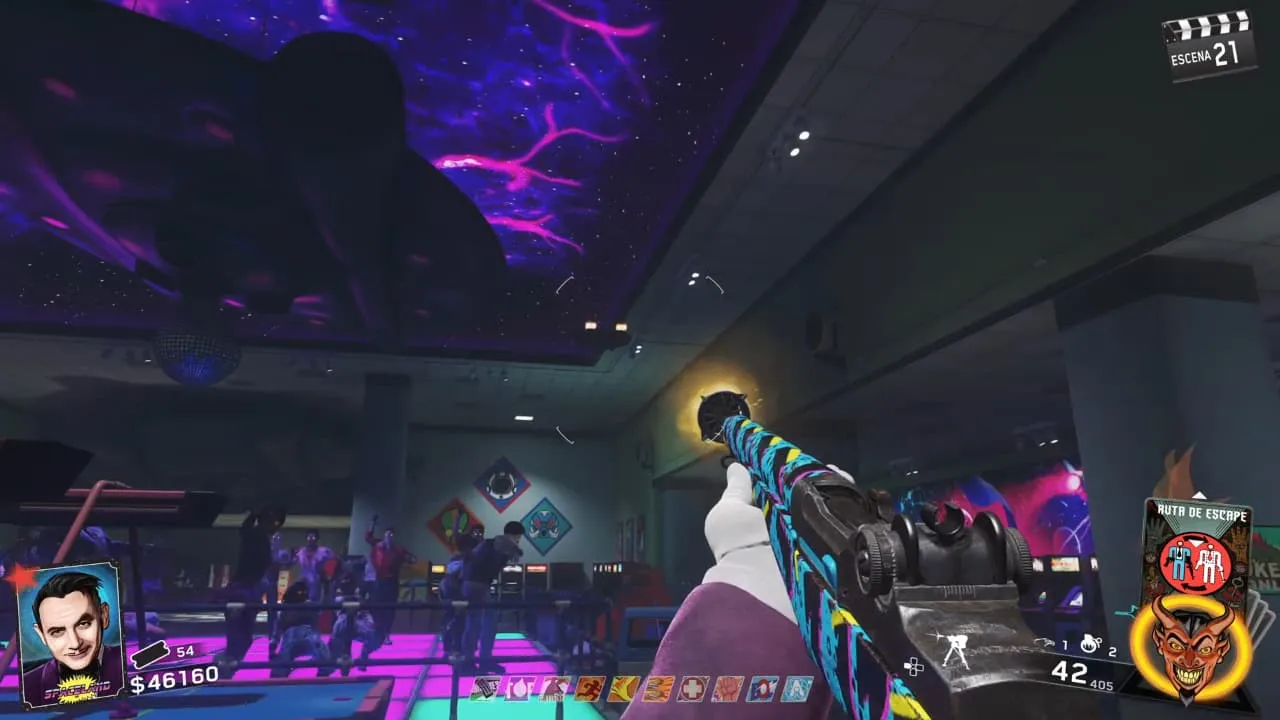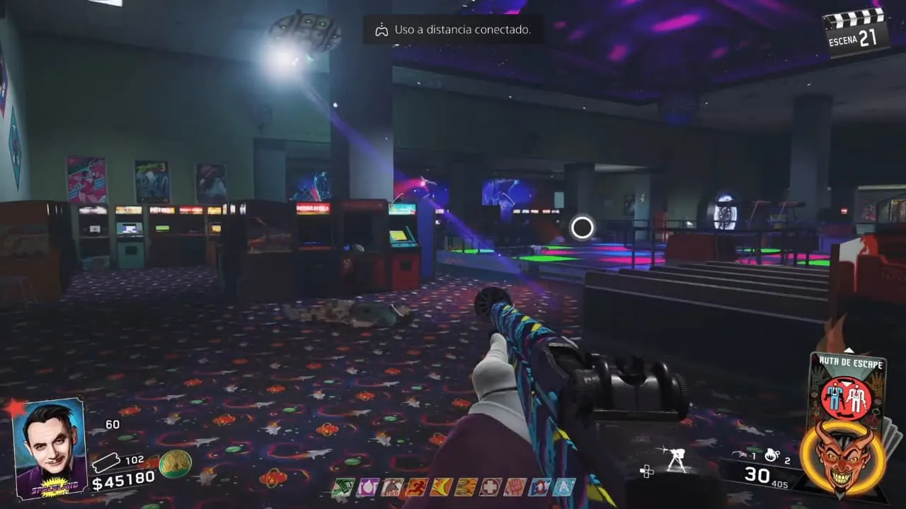 - Al dispararle a todos los objetivos podrás recoger la batería en la pista de baile dentro del Arcade