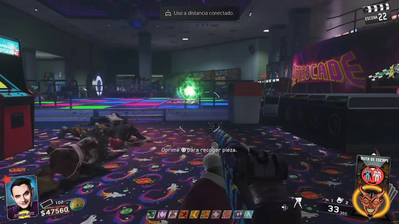 Al terminar de matar zombies el OVNI soltara un orbe de luz que debes recoger y poner en tu arma del núcleo arcano.
