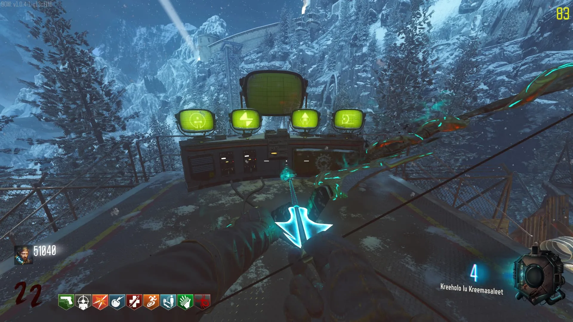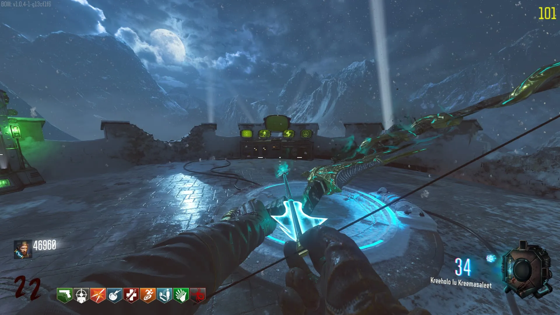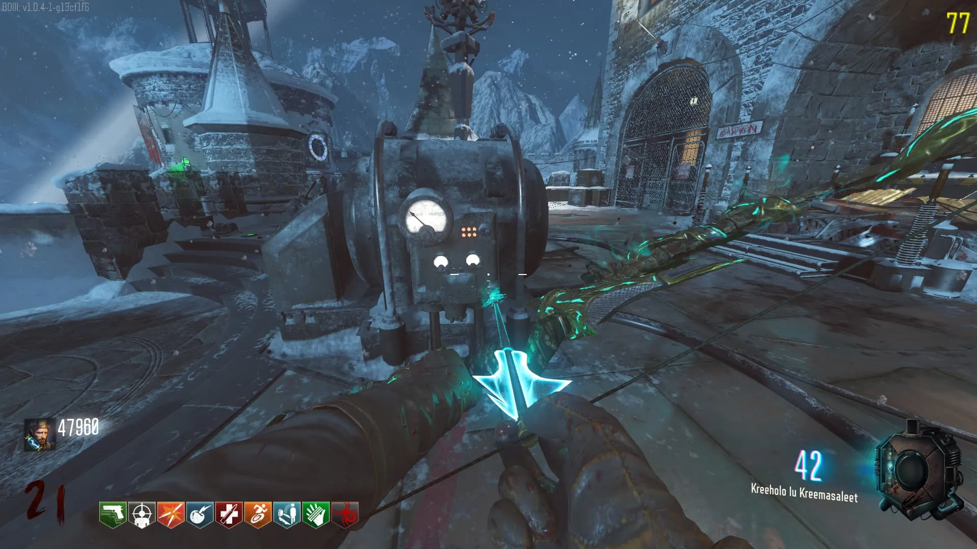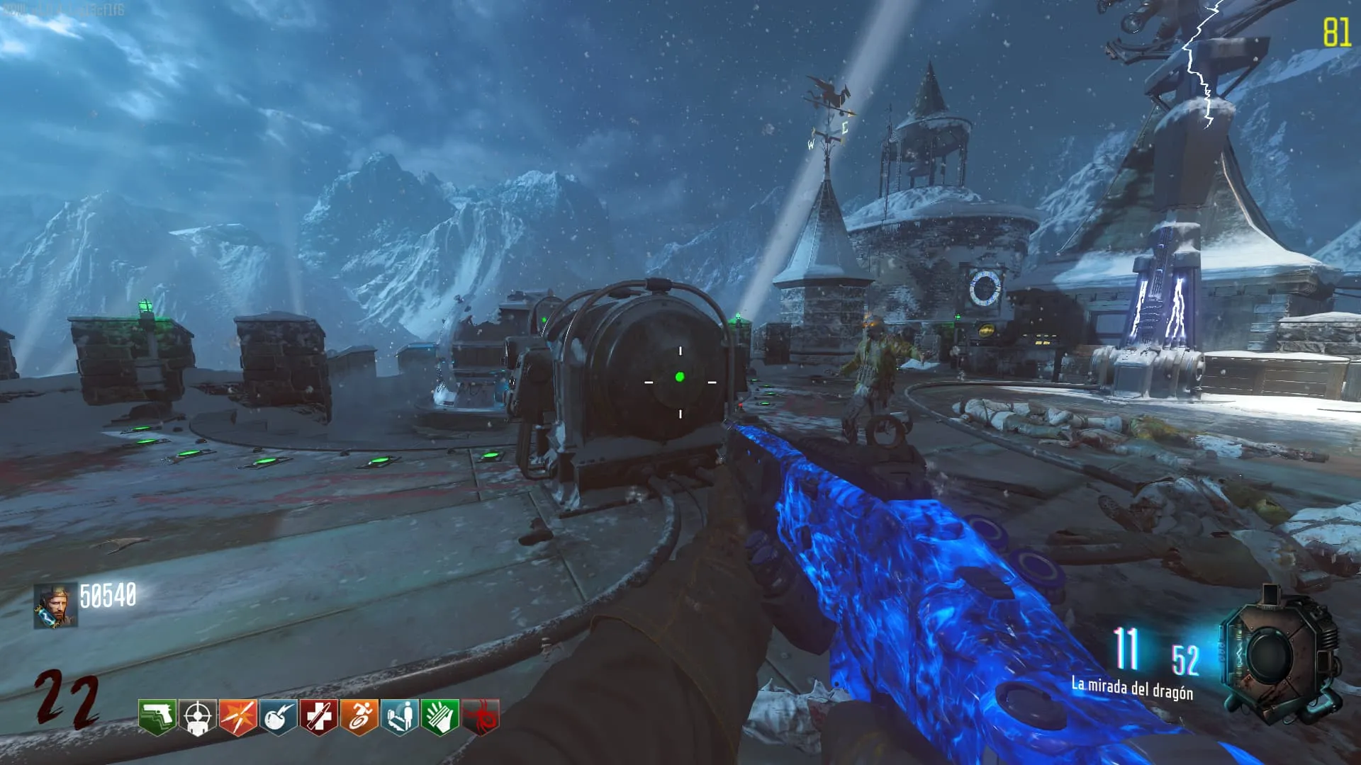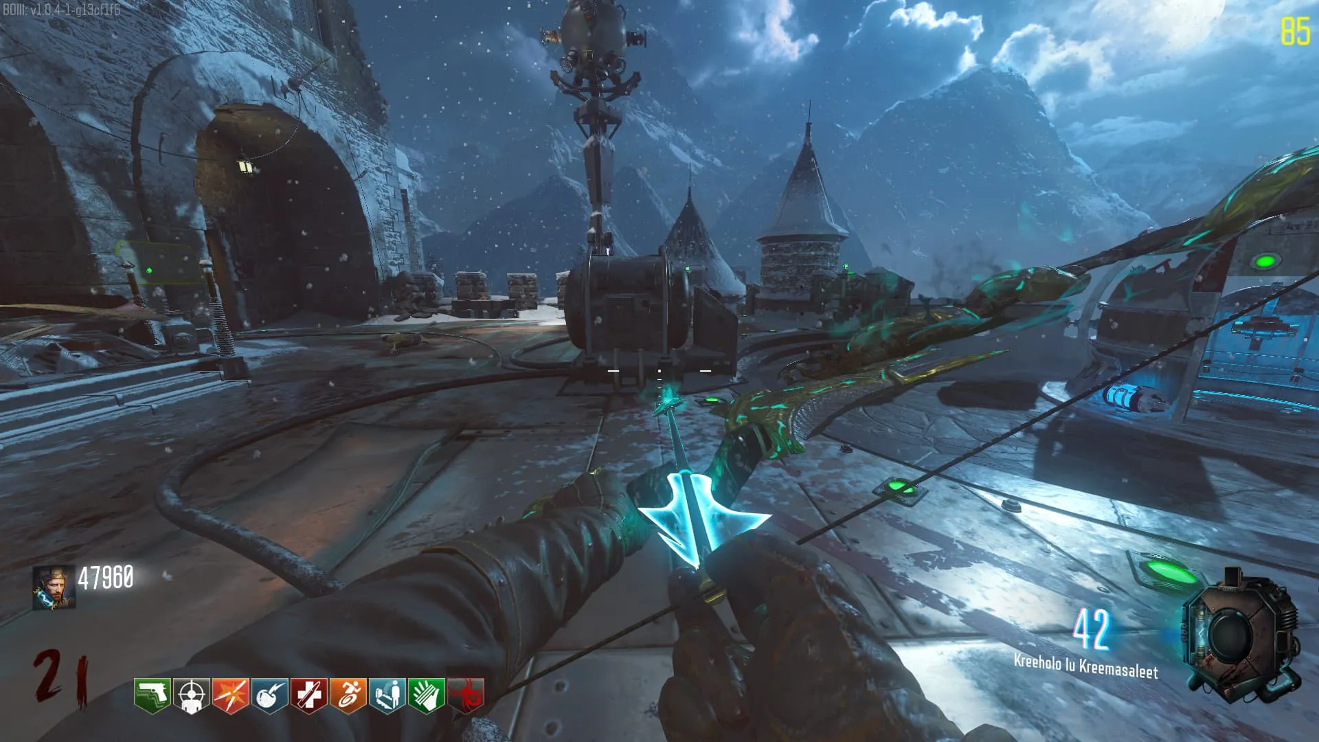 1. El Keeper tendrá varias paradas alrededor del mapa, cuando se pare, dejará una zona marcada frente a él. Debes pararte en esa zona y empezar a matar Zombies con uno de los Arcos Mejorados. Al entrar a la zona tendrás un aura en tu pantalla, esa aura te dice que Arco debes usar.