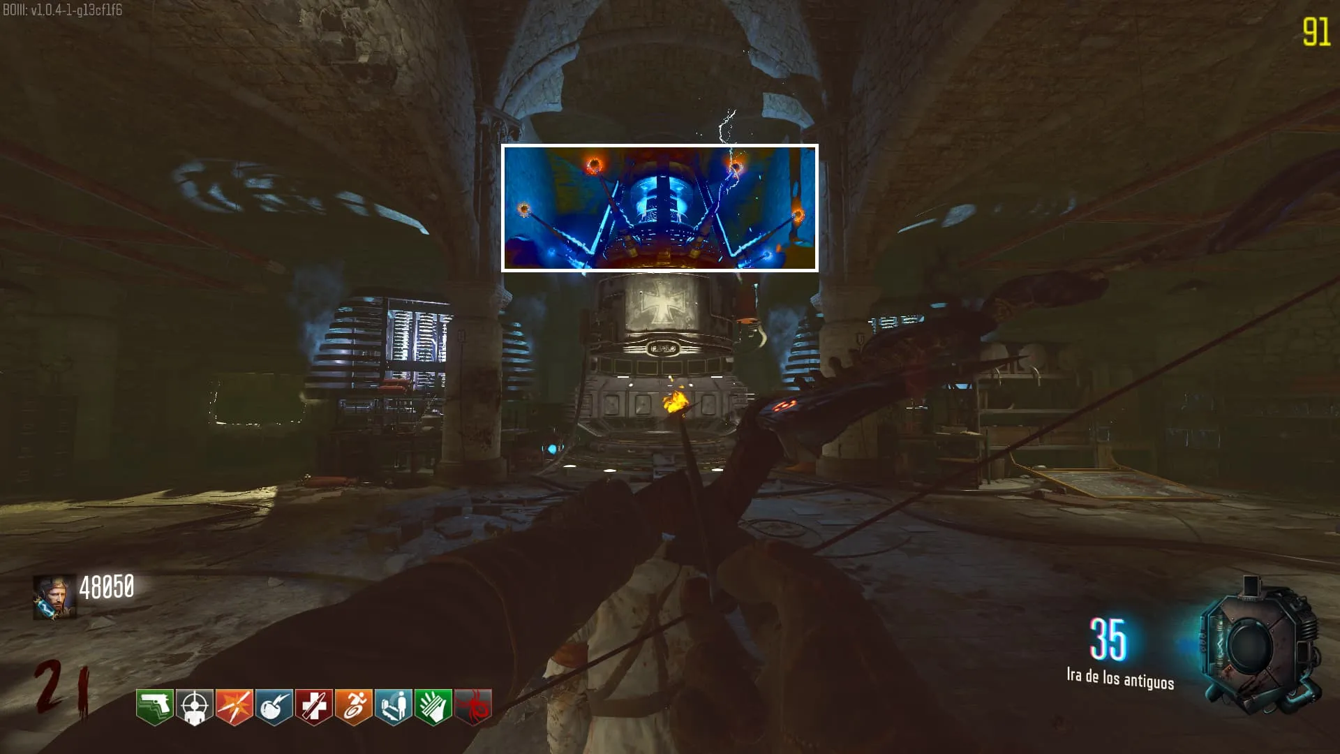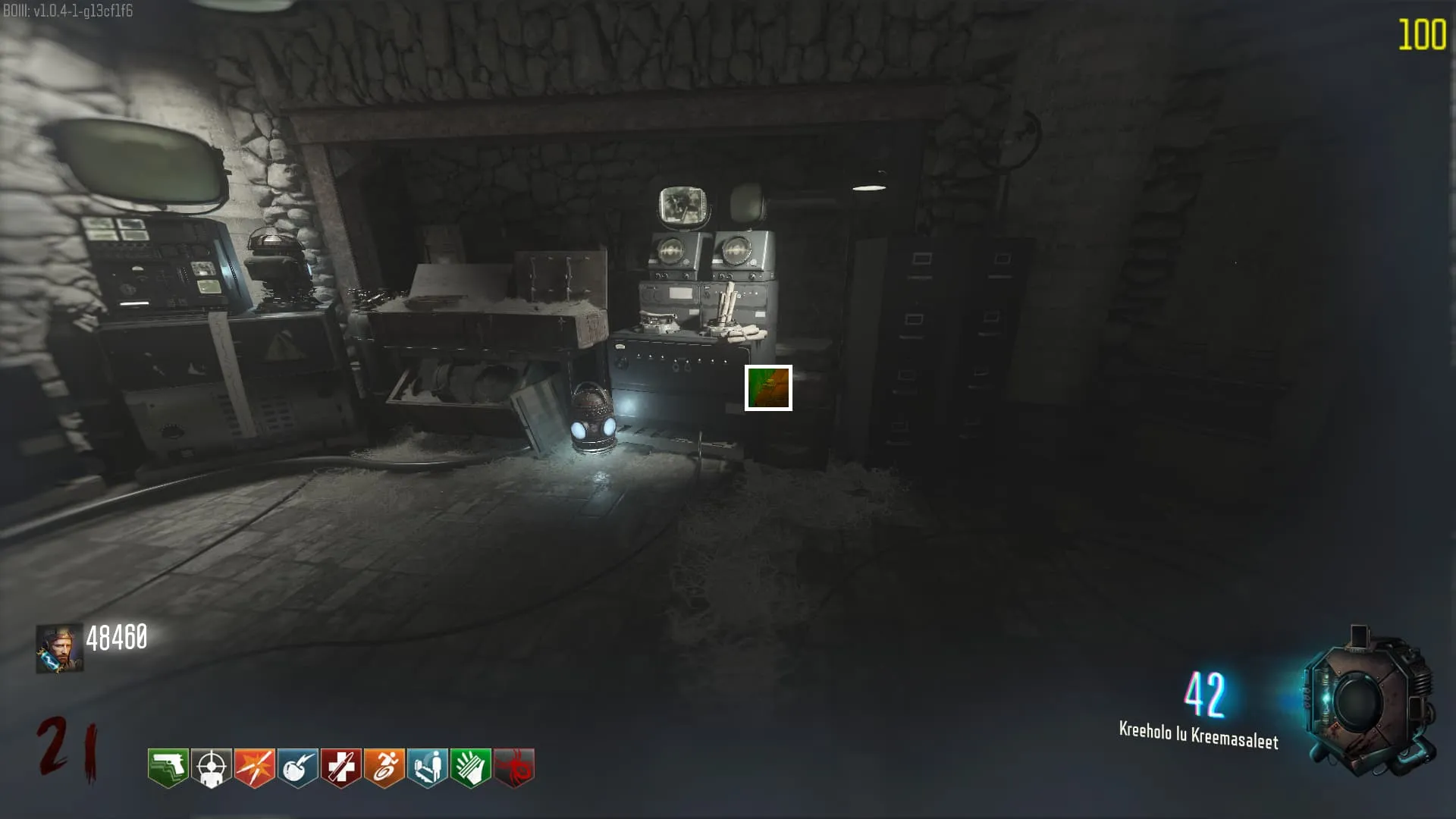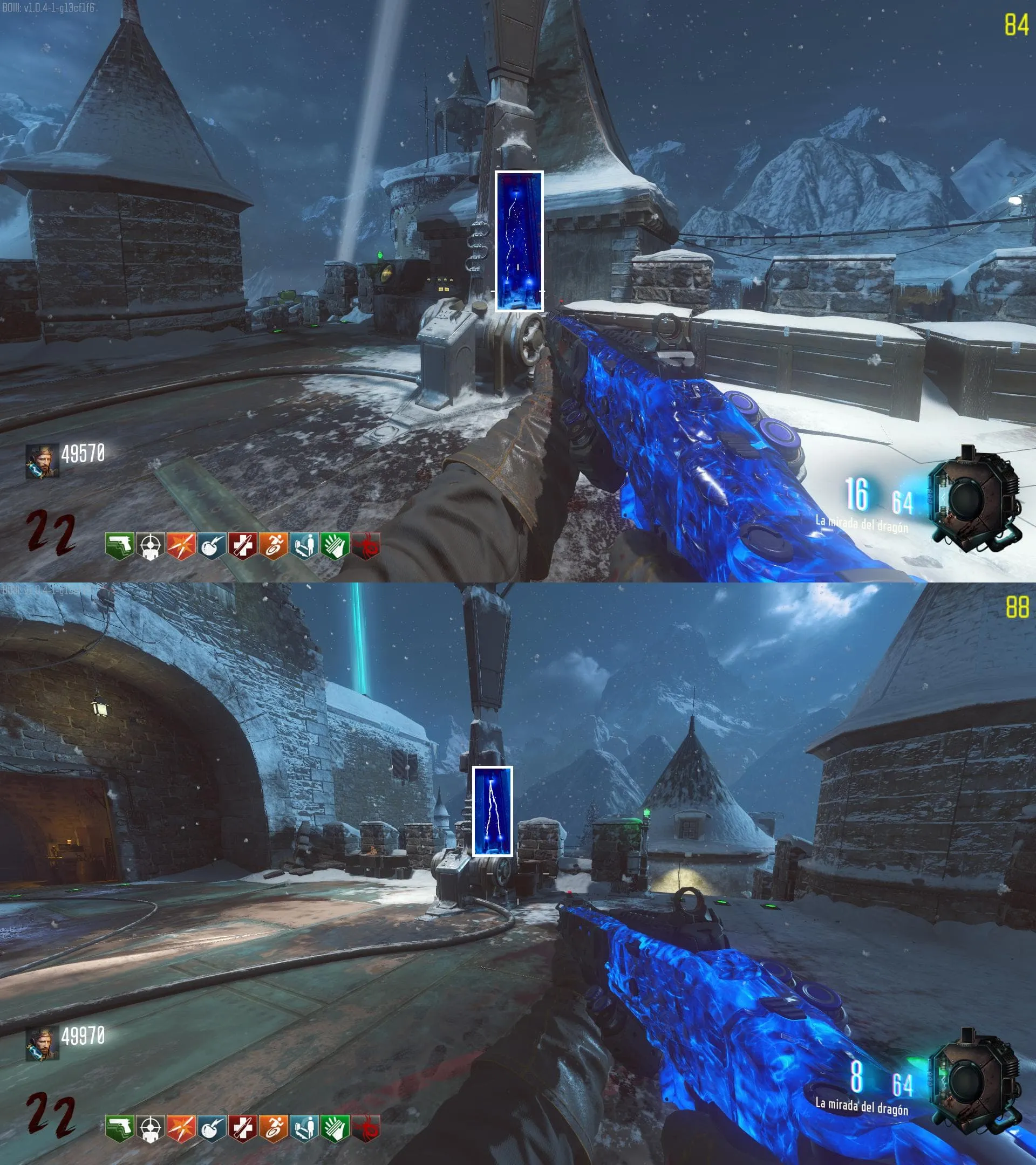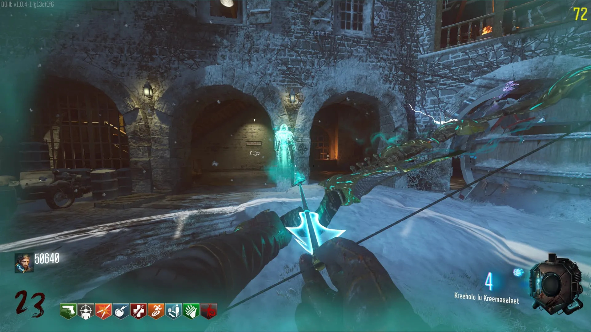 1. El Keeper tendrá varias paradas alrededor del mapa, cuando se pare, dejará una zona marcada frente a él. Debes pararte en esa zona y empezar a matar Zombies con uno de los Arcos Mejorados. Al entrar a la zona tendrás un aura en tu pantalla, esa aura te dice que Arco debes usar.