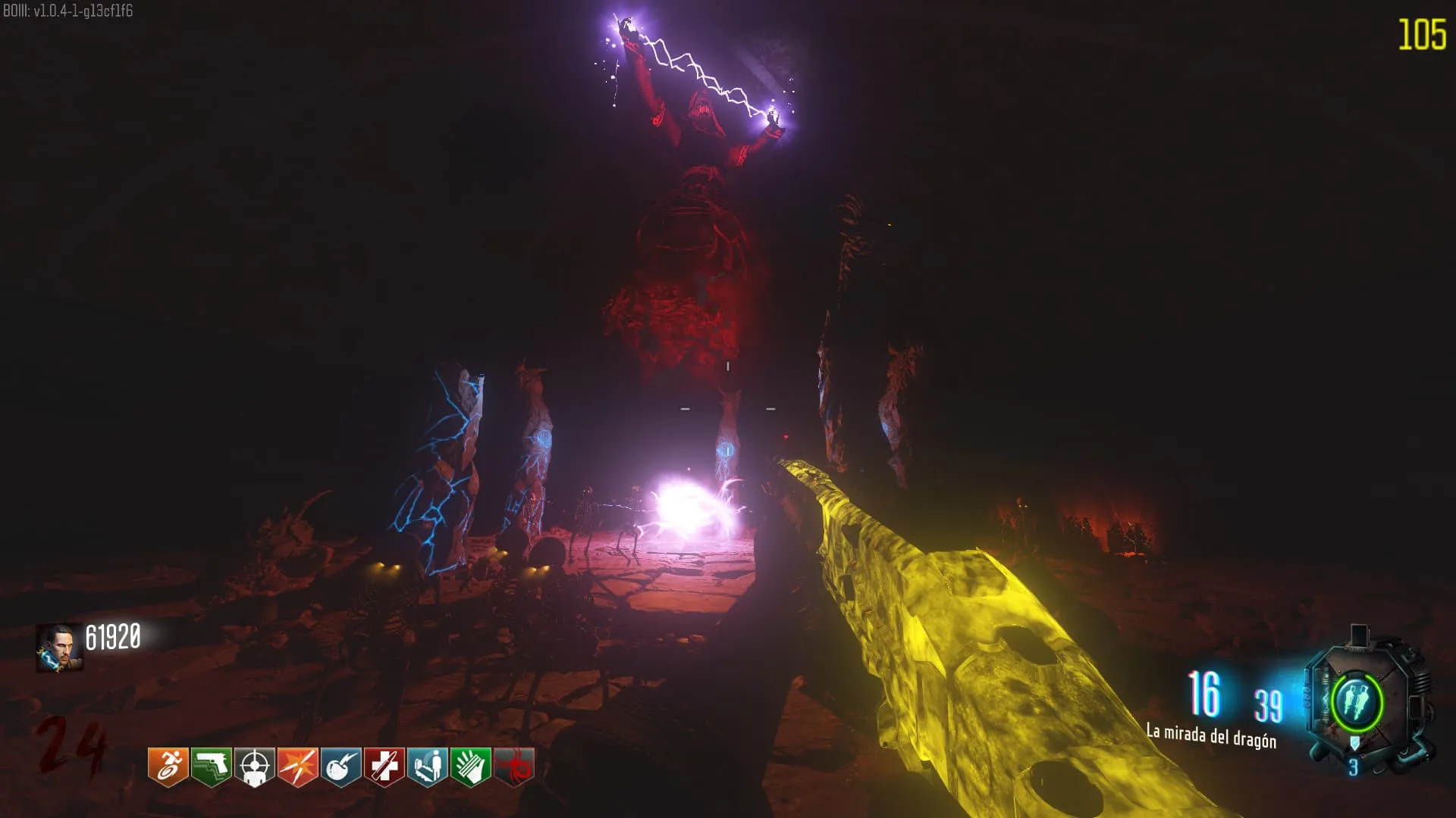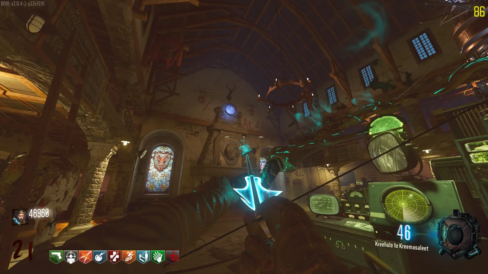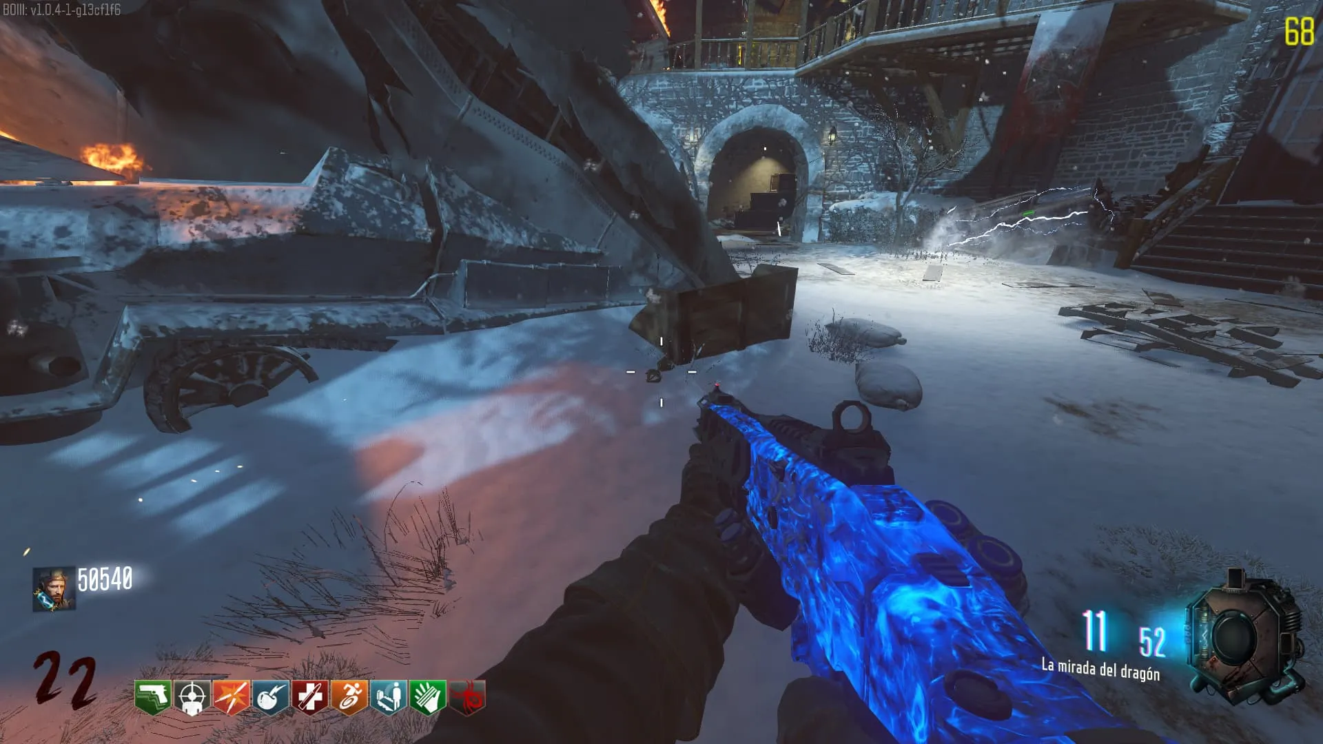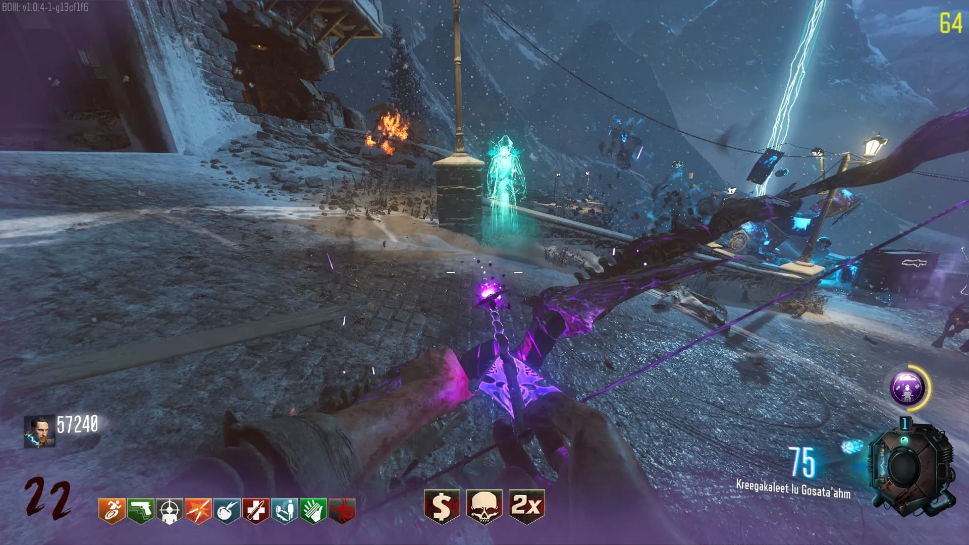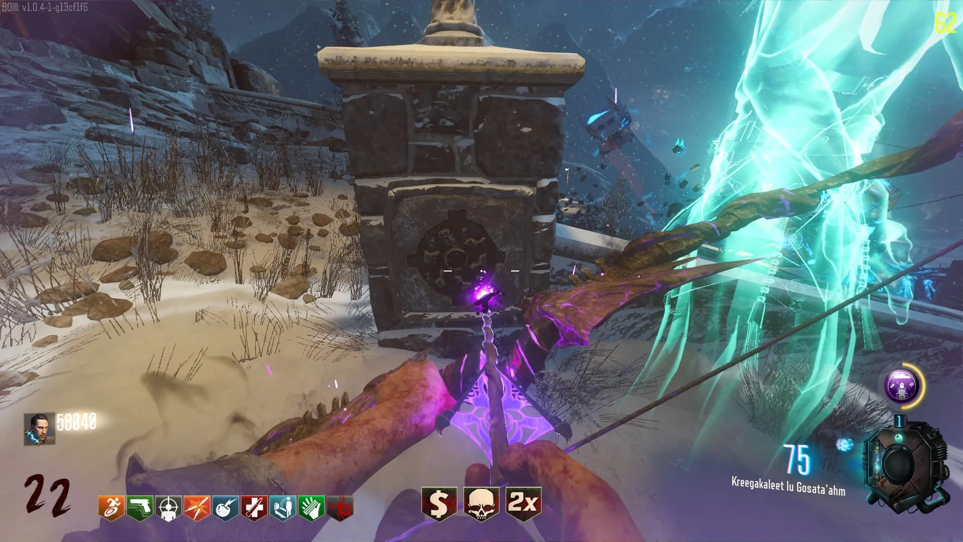 1. El Keeper tendrá varias paradas alrededor del mapa, cuando se pare, dejará una zona marcada frente a él. Debes pararte en esa zona y empezar a matar Zombies con uno de los Arcos Mejorados. Al entrar a la zona tendrás un aura en tu pantalla, esa aura te dice que Arco debes usar.