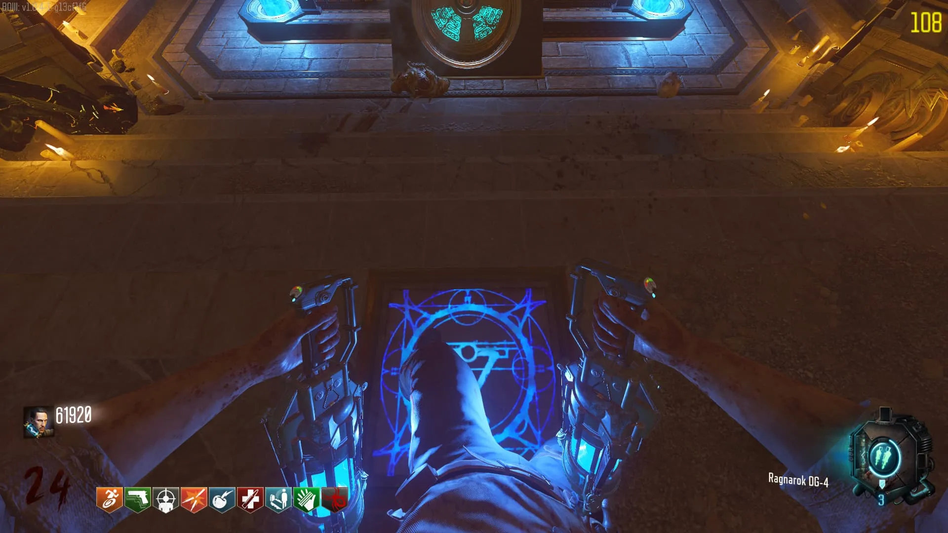 1. Dirígete a la iglesia y baja por las escaleras, coloca el dispositivo Vril en la sala de la «Ira de los Antiguos».