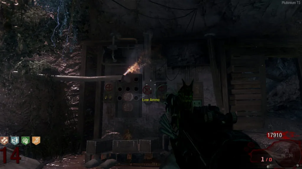 Haz que el Zombie Napalm pase por todas esas zonas donde haya una filtración, convertirá el gas en fuego. Hay 4 filtraciones en total por las que debe pasar el Zombie Napalm, la última siendo justo antes de llegar a la Electricidad.