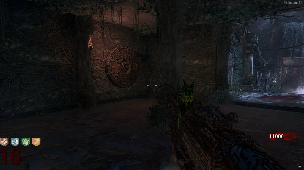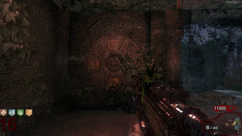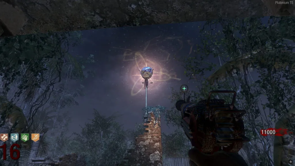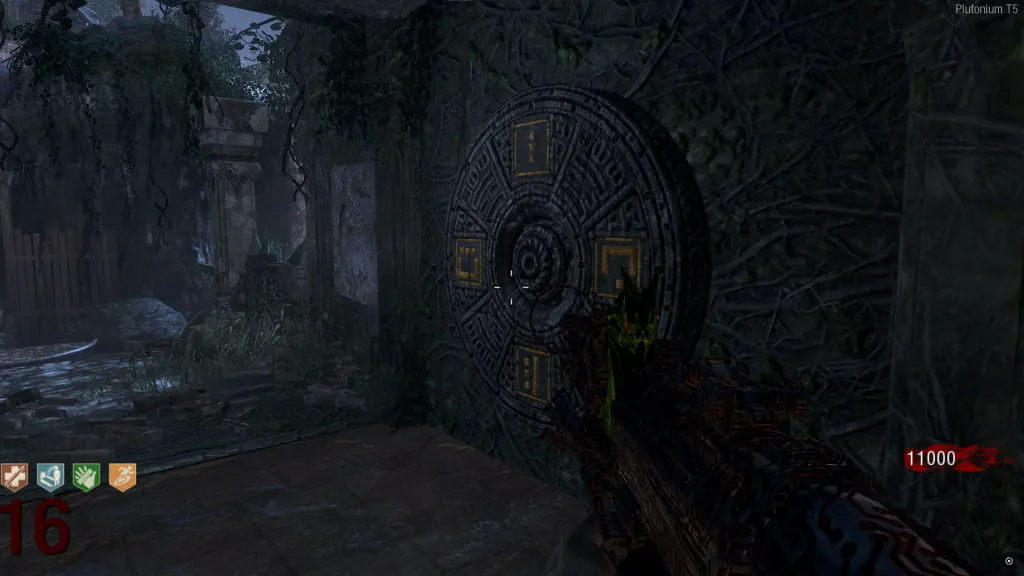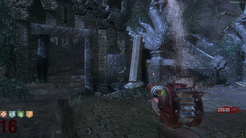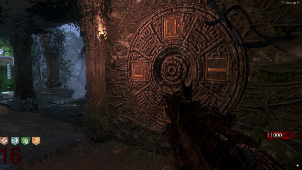 Al activarlo, comenzará un eclipse y el mapa se pondrá de noche. Ve a esta estatua cerca de Juggernog/Speed-Cola e interactúa con el botón debajo de ella