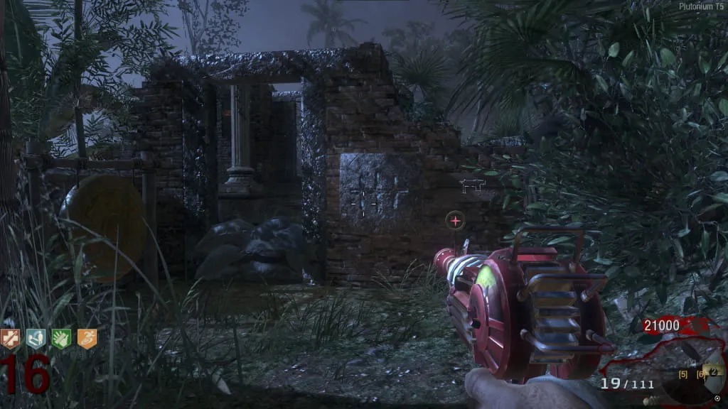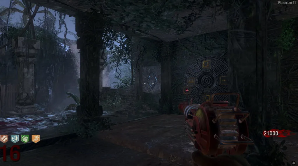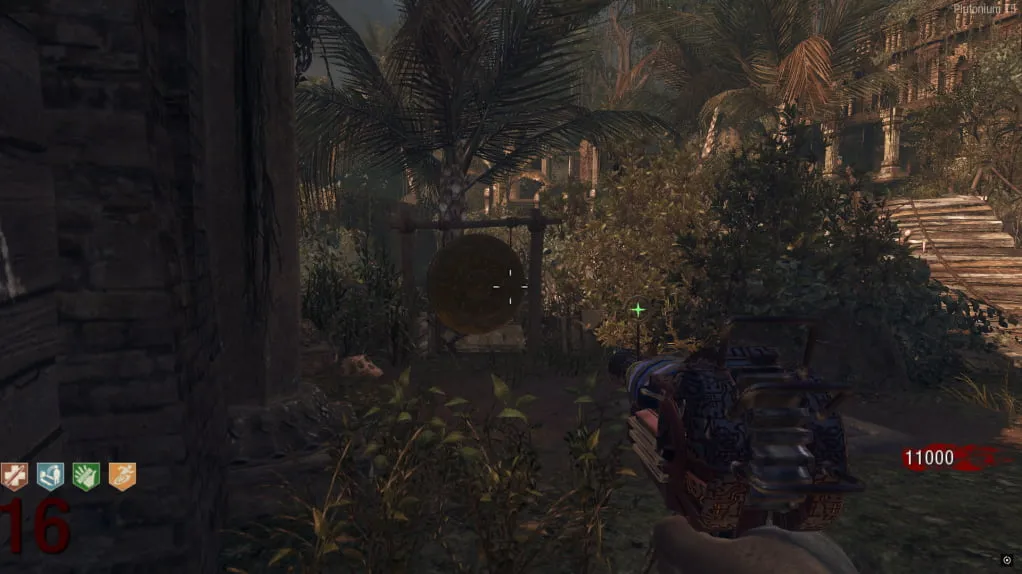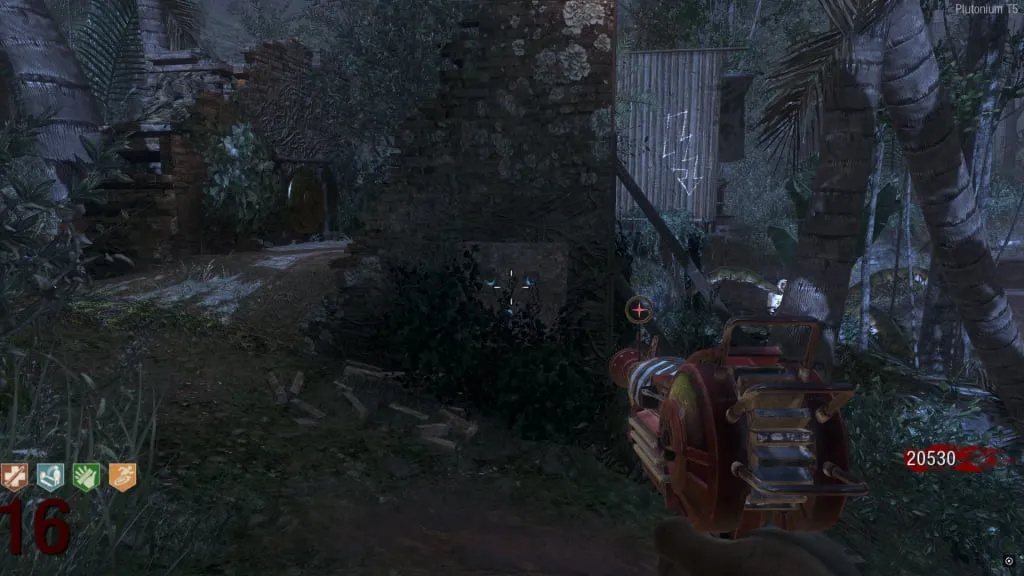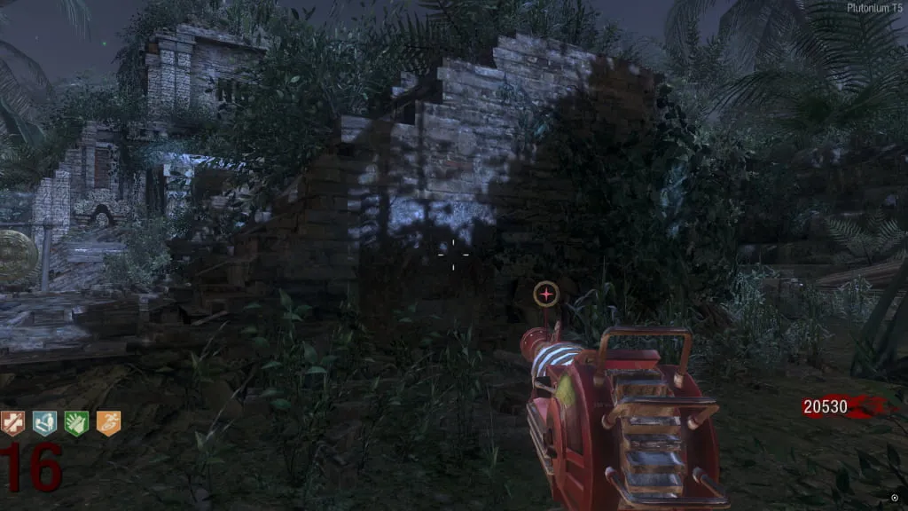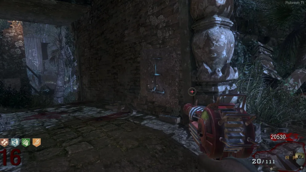 Al activarlo, comenzará un eclipse y el mapa se pondrá de noche. Ve a esta estatua cerca de Juggernog/Speed-Cola e interactúa con el botón debajo de ella