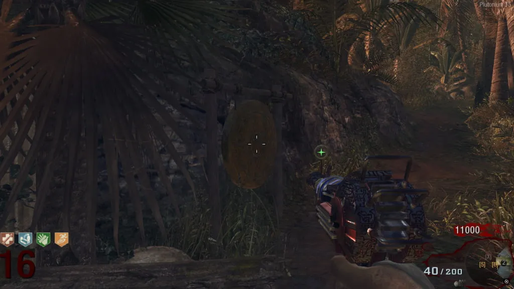 Veras 4 huecos en la izquierda. Coloca las Claymores en dirección a dicho huecos y haz que los zombies pasen por ellas. Si lo haces bien al explotar las Claymores, los pinchos se clavarán en el hueco, repite el proceso hasta llenar los 4 huecos.
