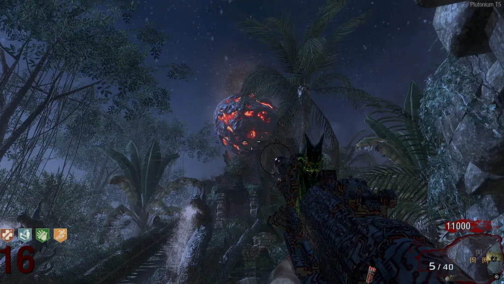 Activa el Eclipse. Vuelve al inicio de la cascada donde caerá un meteorito, tírale una granada, cuando caiga dispárale con la 331-79 JGb215, y luego acuchíllala