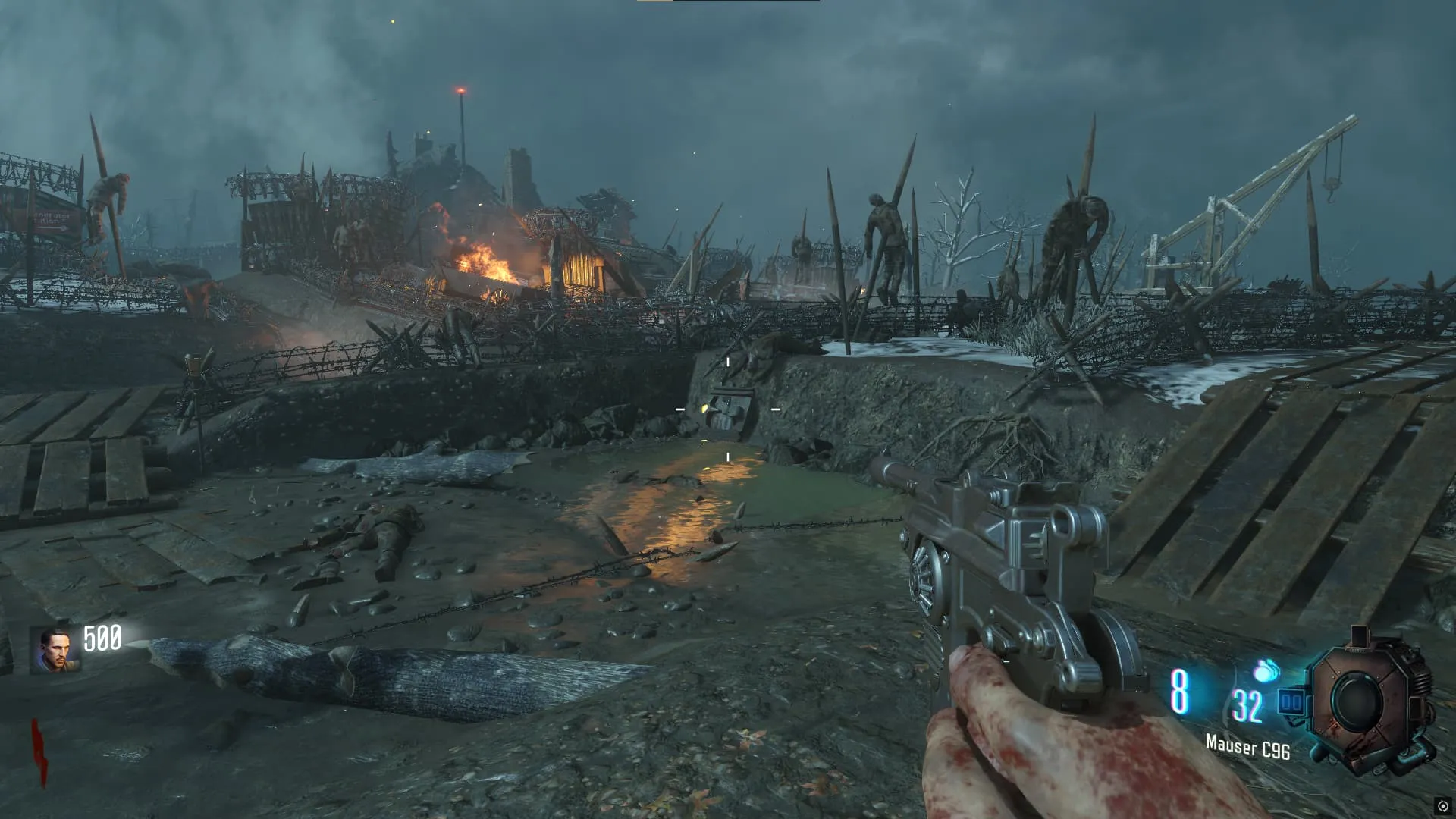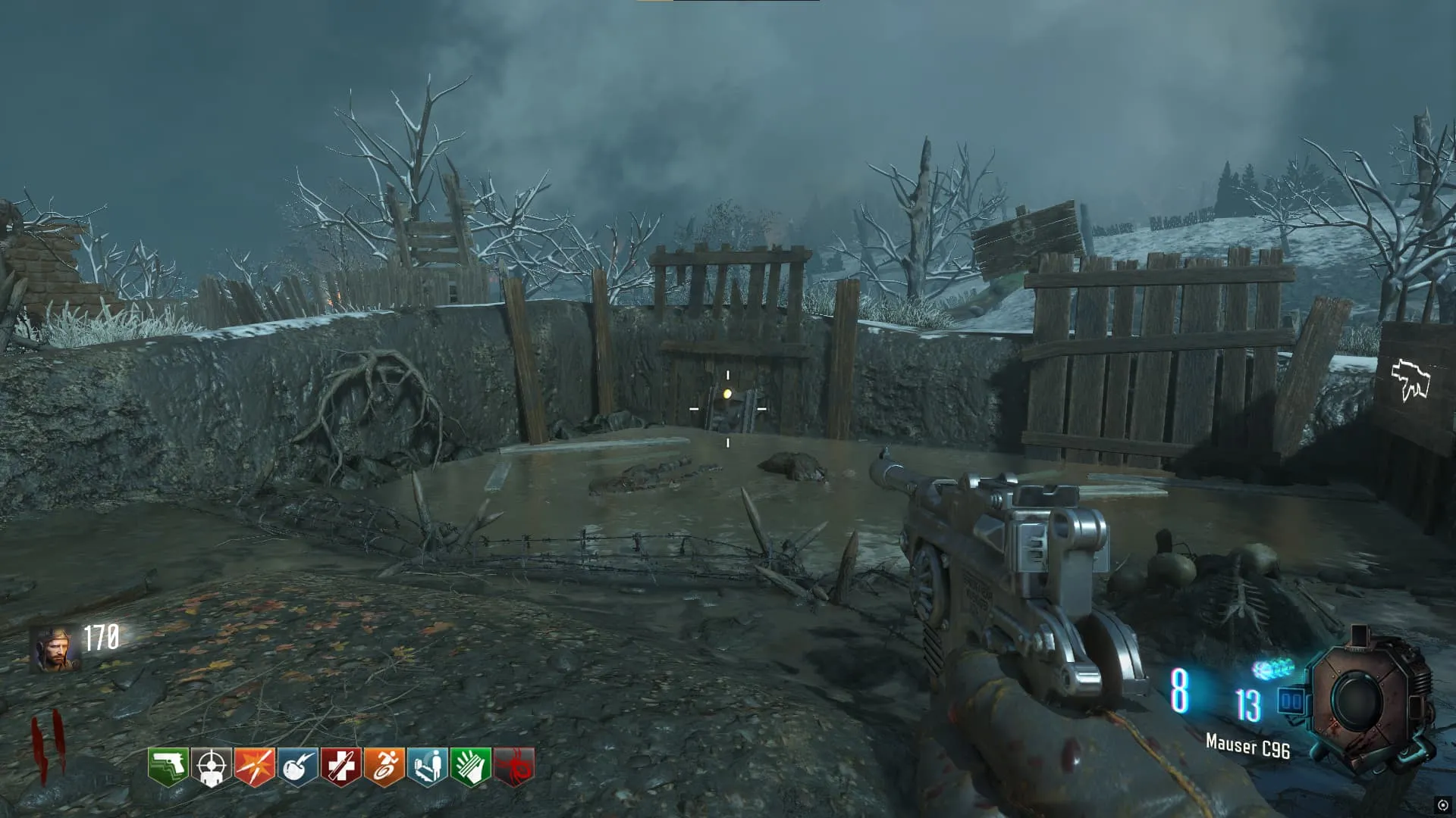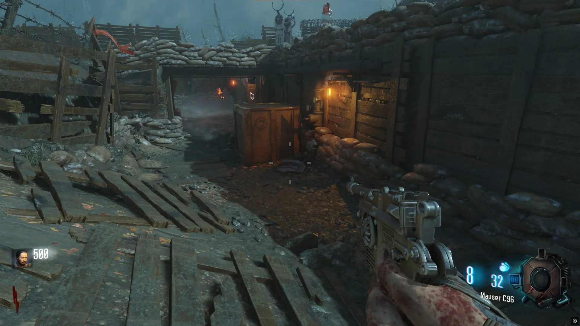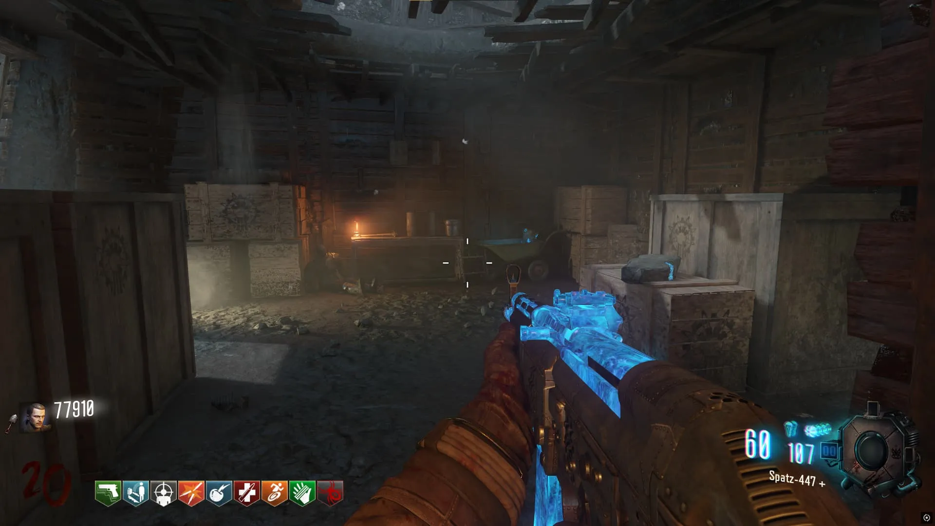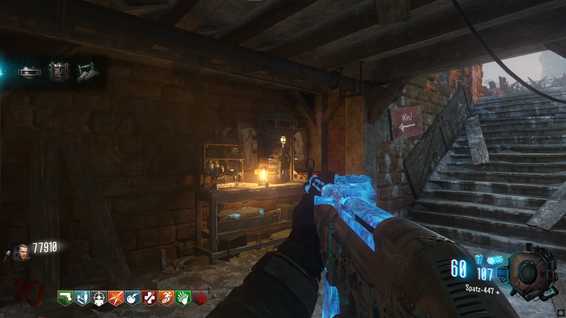 Al terminar de recolectar todas las piezas del escudo, puedes construirlo en una de las dos mesas del mapa, una en el túnel del baston del viento (Generador 4/Juggernog) y otra en el piso inferior de la iglesia (generador 6)