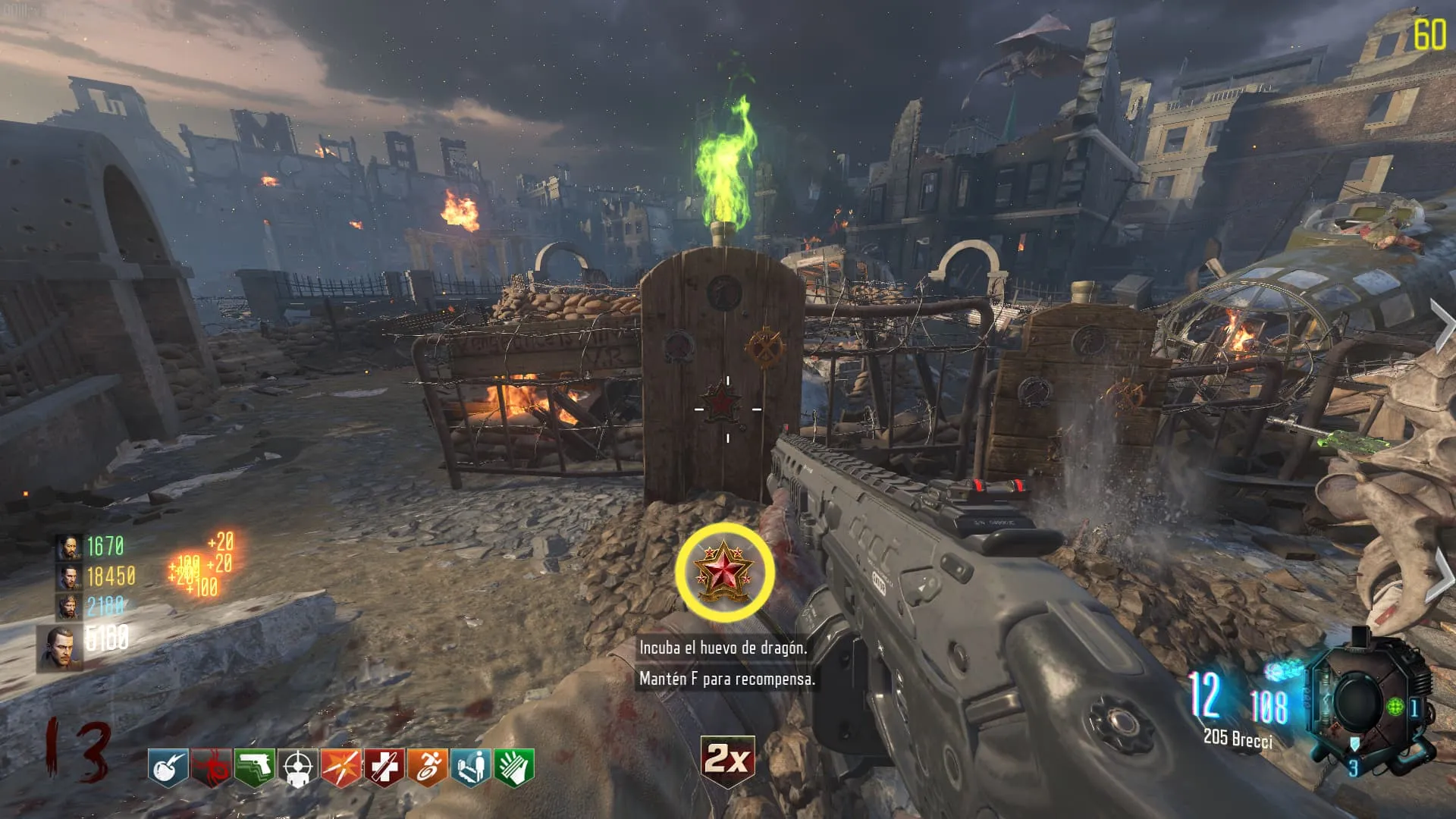 1. Deberás completar una serie de desafíos para que el huevo se cargue. El primero es matar a Zombies cubiertos de fuego del Dragon. Simplemente espera a que el Dragon dispare su fuego y deja que los Zombies pasen por él.