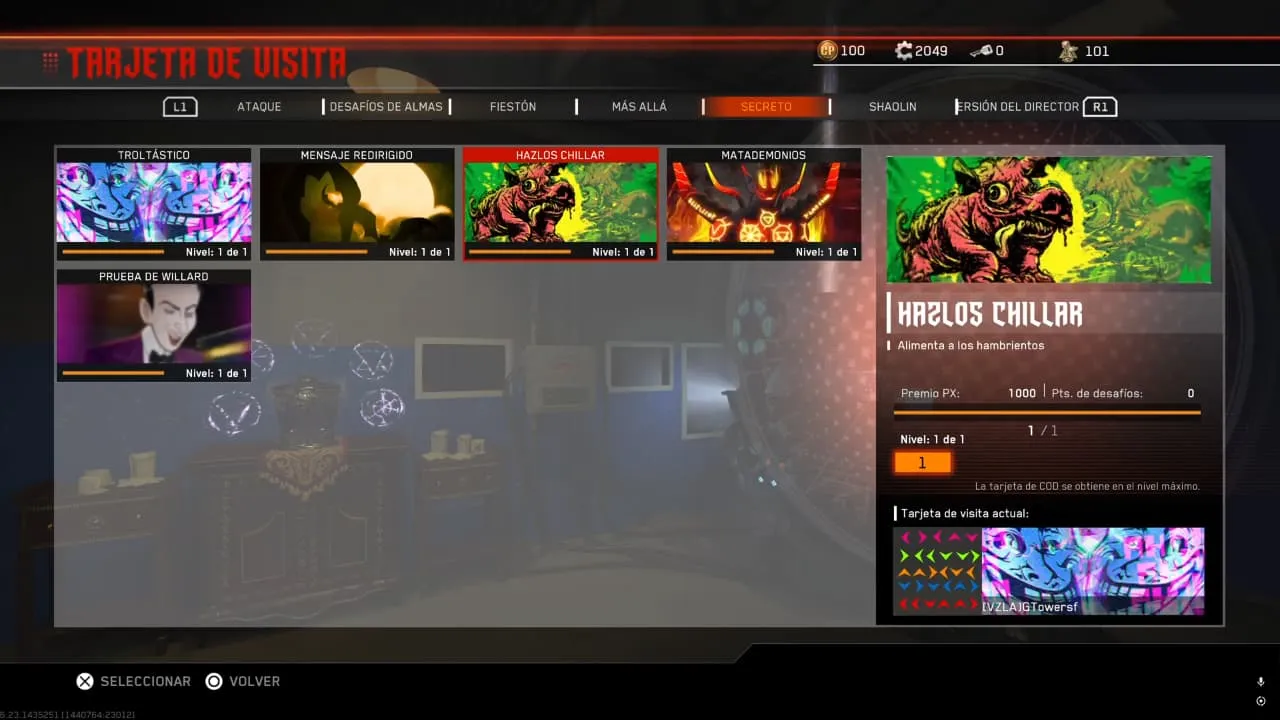 Al terminarlo, podrás equiparte la tarjeta de visita «Hazlos Chillar» dentro en Desafío de Almas > Secreto