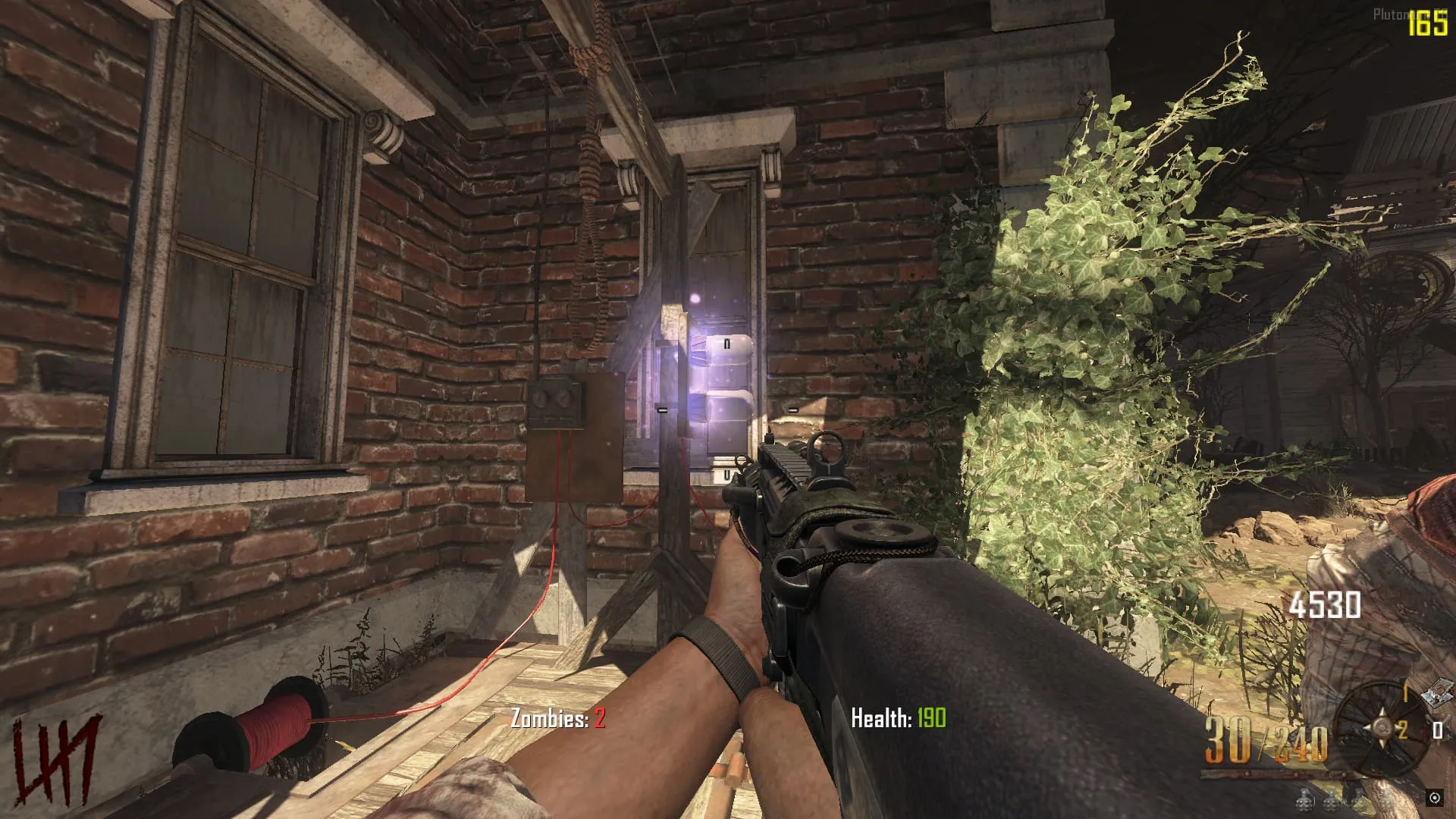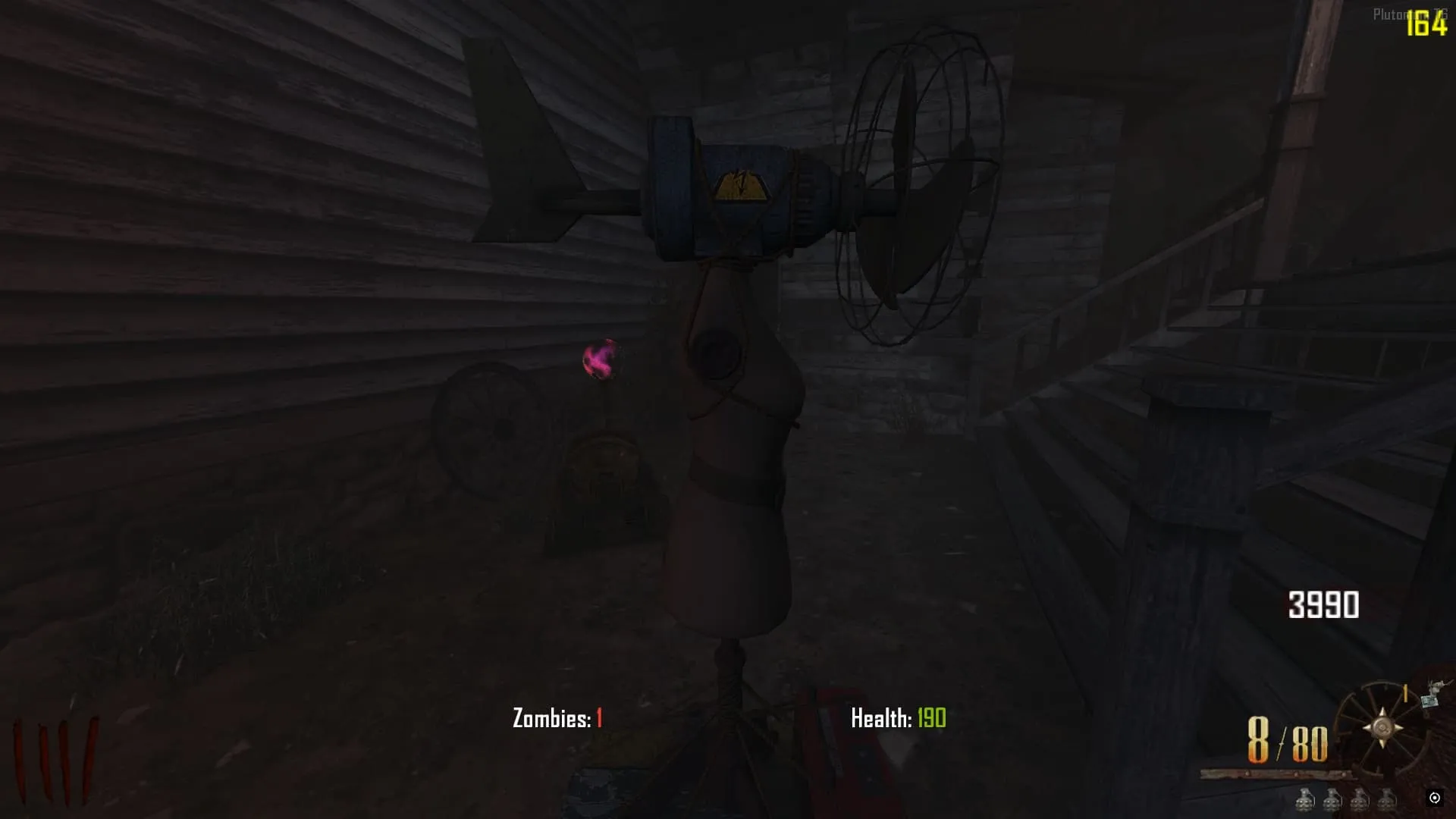 1. Al Acuchillarlos todos, aparecerá un orbe en el último letrero. El cual tendrás que seguir todo el camino hasta la guillotina. El orbe pasará entre los Zombies y absorberá su energía para no desaparecer.