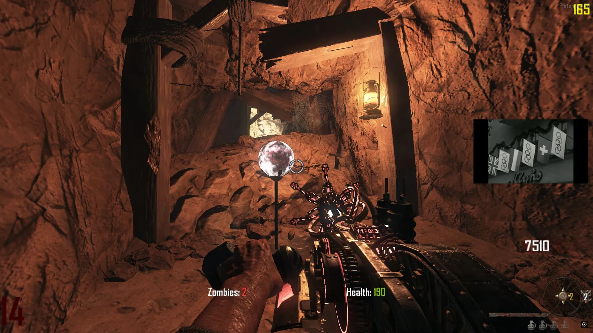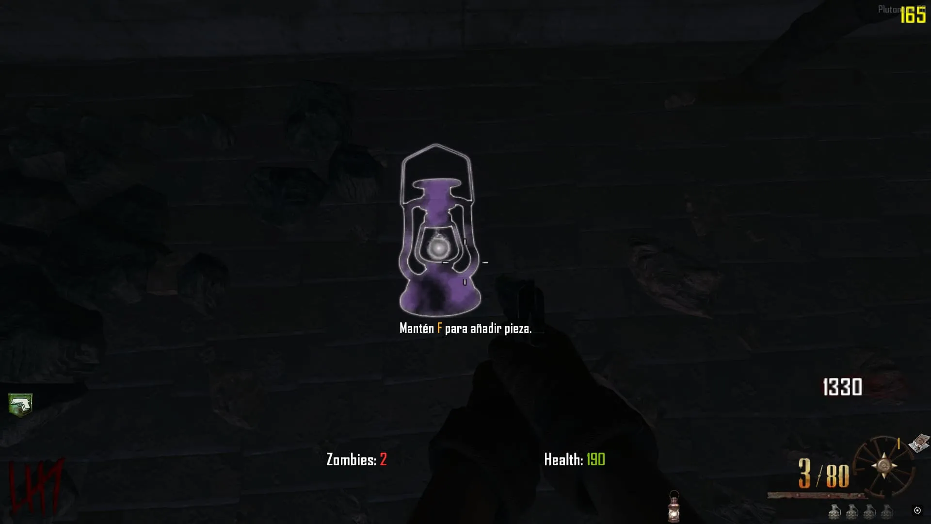 Busca una Lampara Morada flotando alrededor del mapa, entre las afueras del Tribunal, La Iglesia o la Celda de Arthur. Debes lanzarle una granada y que explote cerca de la Lampara para que caiga. Richtofen te hablara y agarra la lampara CUANDO TERMINE SU DIALOGO.