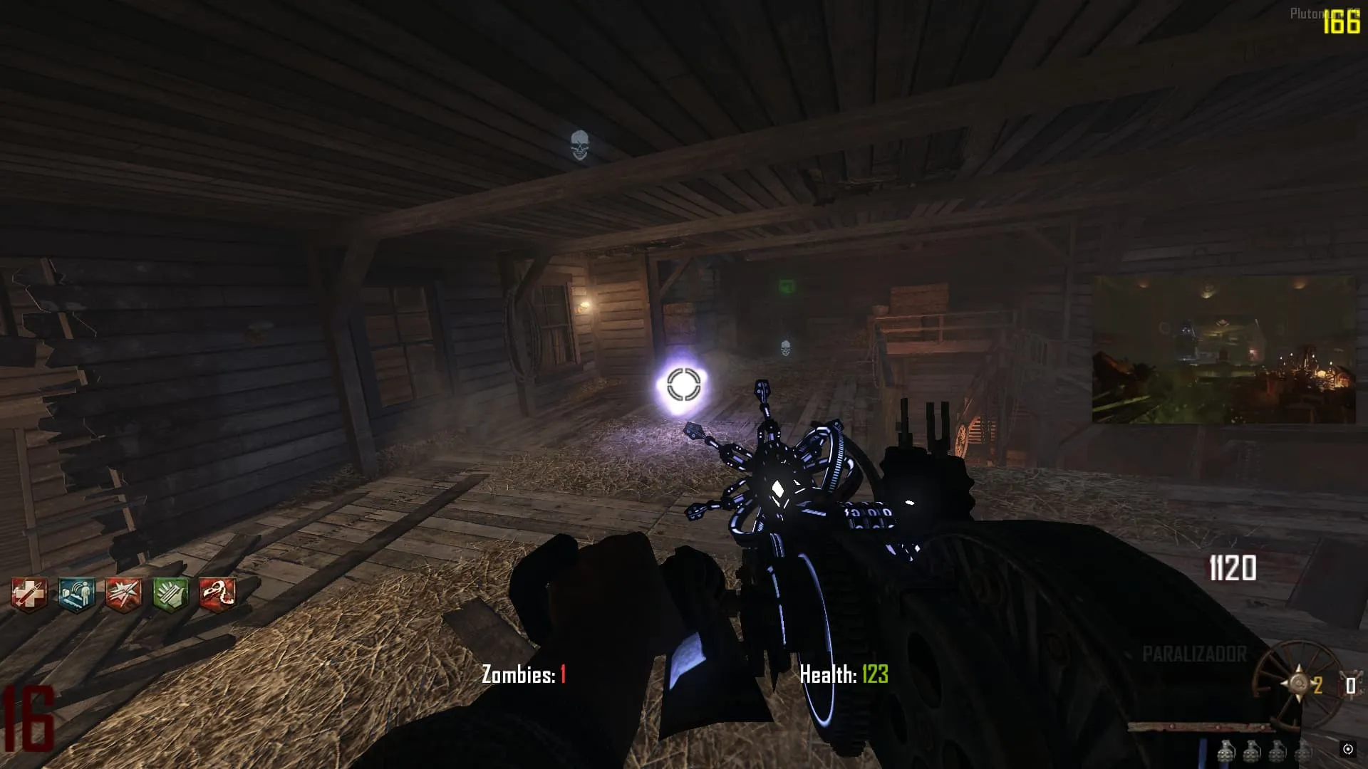 La última ubicación sera la Guillotina, al tocarla, el orbe se manifestará en Zombies cercano a él. Debes matarlo para que se llene la Guillotina.
