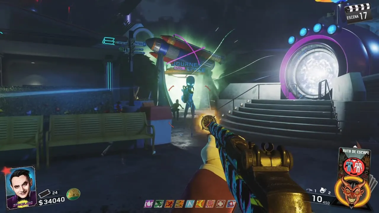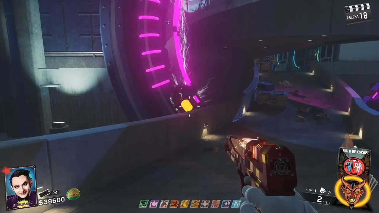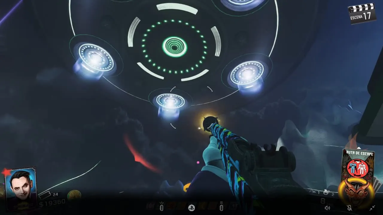 Debes esperar a que el OVNI se ponga encima del portal a Pack-A-Punch e ir al puente de la Sala Inicial y dispararles a los nodos que rodean el anillo de Spaceland.