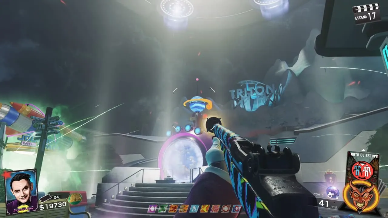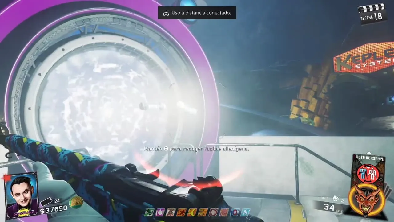 Al quitarle las pilas dos veces y terminar de matarlo, este soltara un fusible alienígena, recógelos y entra a la zona de Pack-A-Punch