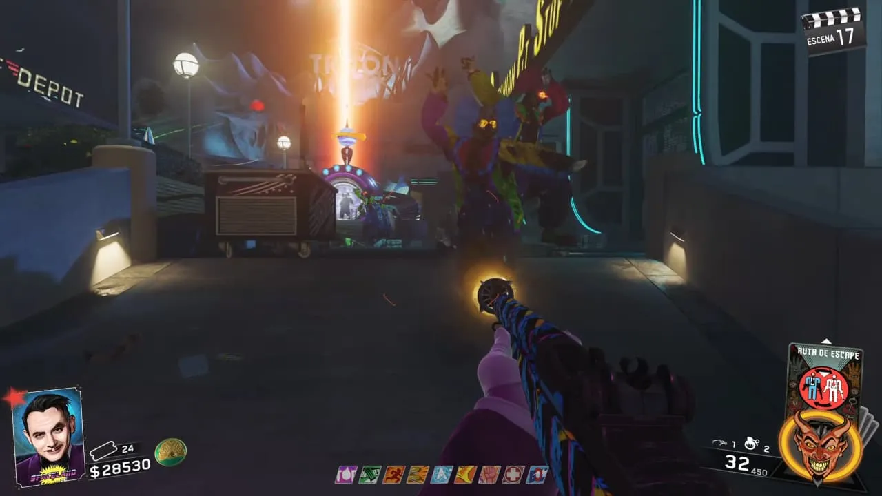 - Debes repetir el Simon Dice, dos veces más y luego aparecerán una oleada de Payasos. Debes matarlos a todos para que aparezca el Alien y comience la Boss Fight
