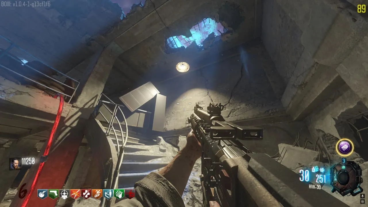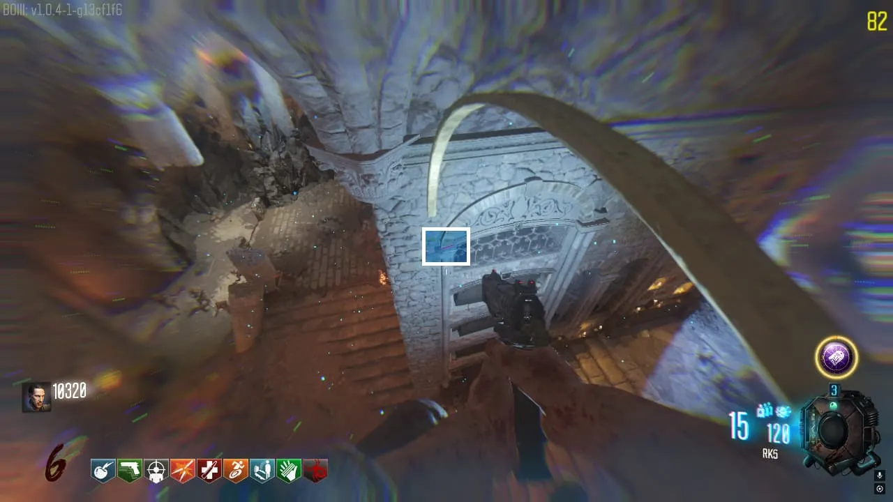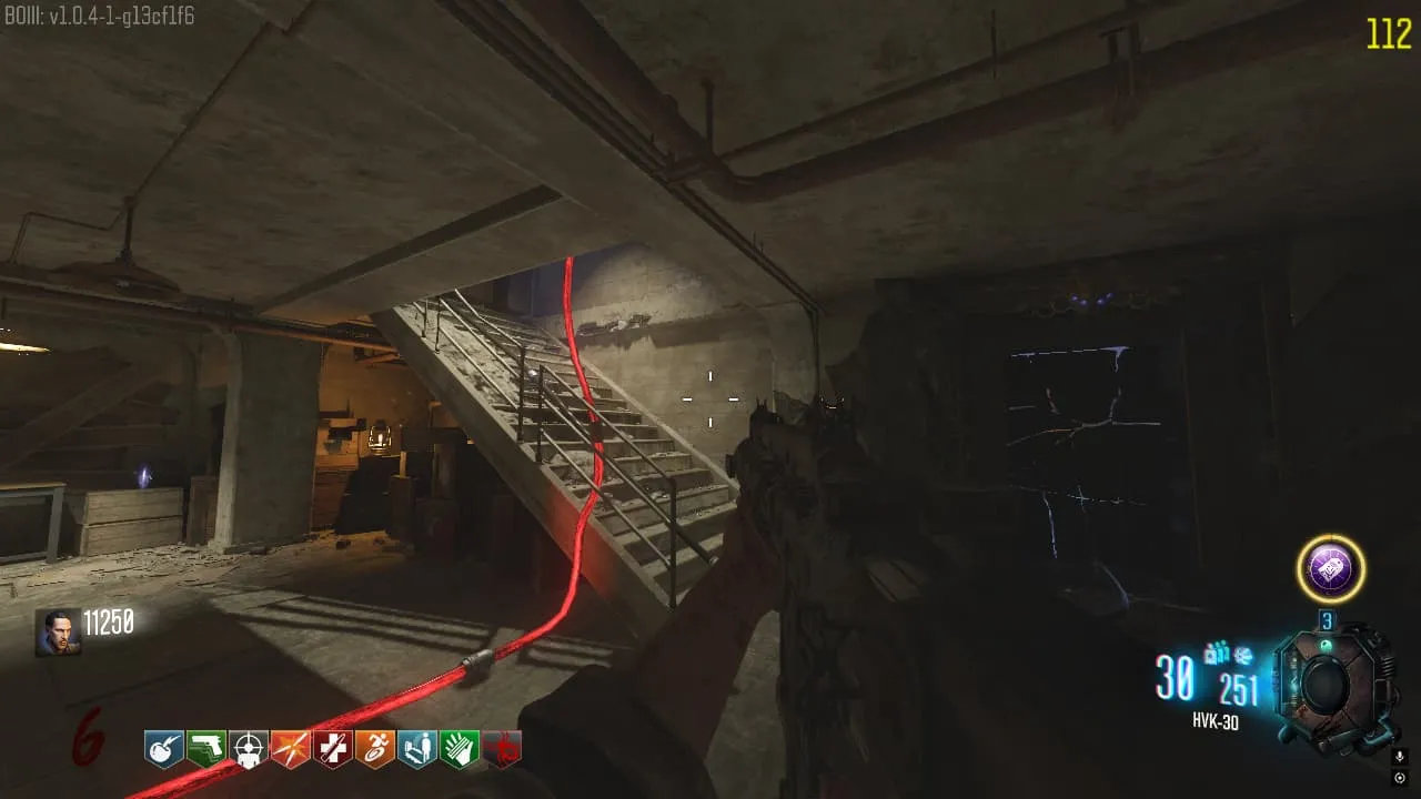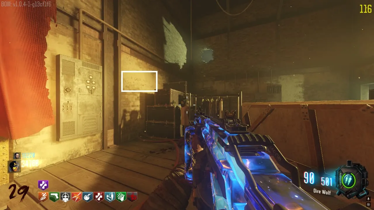 - Dirígete a la siguiente zona en Nacht Der Untoten y coloca el escrito de «Salvation Lies Above» en la escalera de esta zona (No hay ningún escrito aquí)
