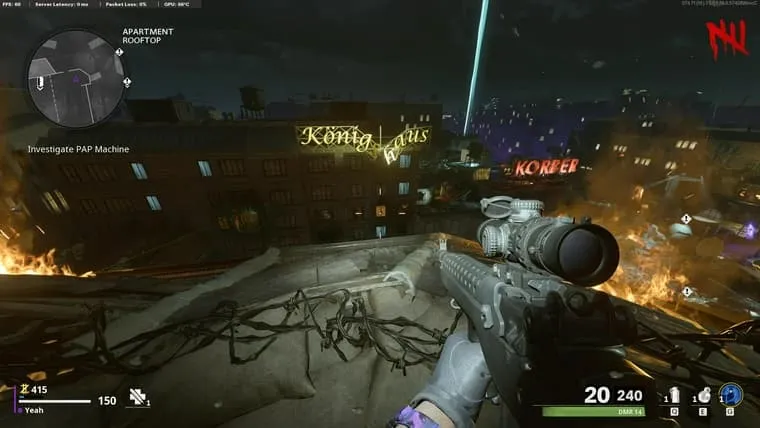 - Interactúa con los documentos tirados en el suelo en la Sala Inicial. Activando un campo de tiro en el que tendrás que dispararle a 5 Objetivos en muy poco tiempo entre ellos.