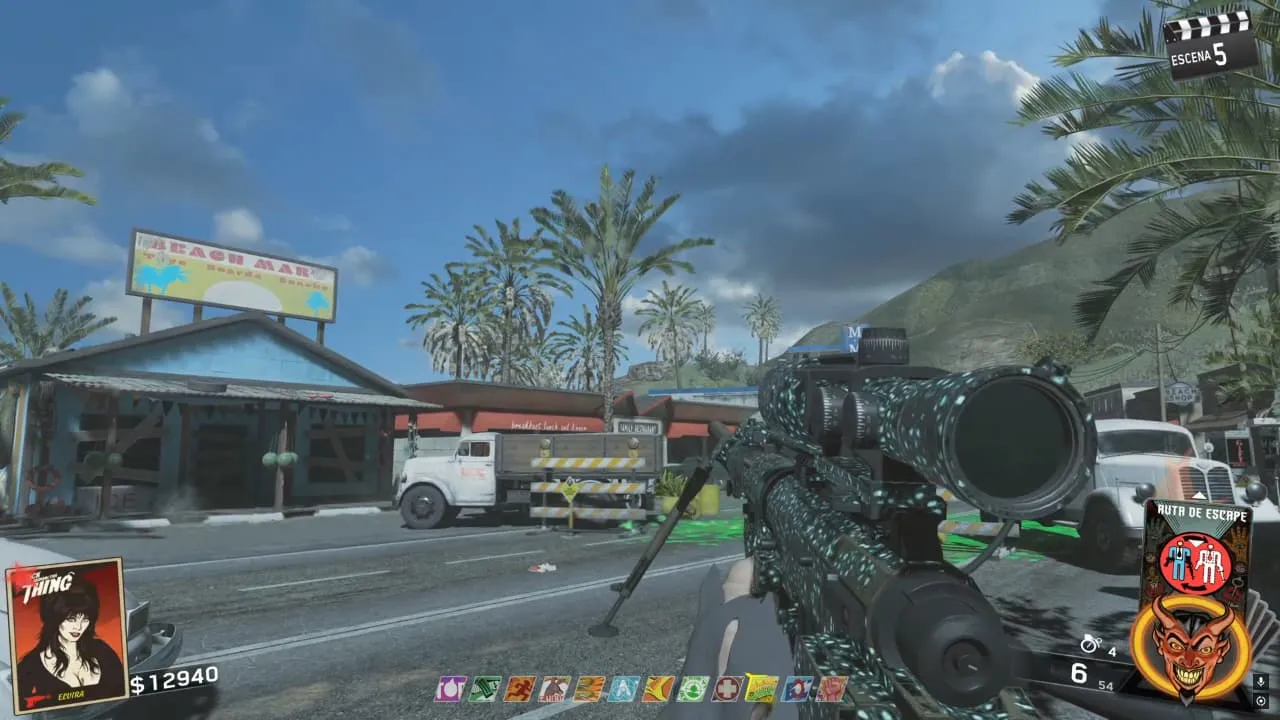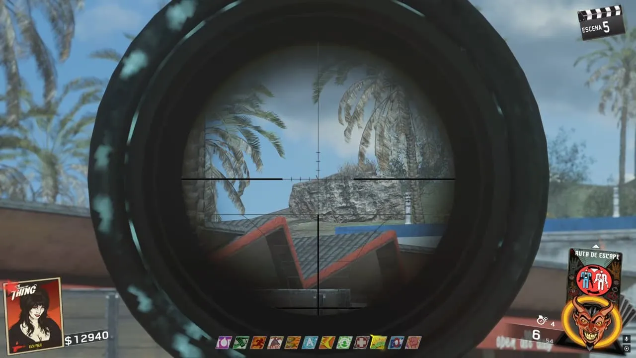 Dirígete frente al Supermercado y apunta hacia una roca lejana. (Se puede hacer con cualquier arma, pero es recomendable que se use un Sniper)