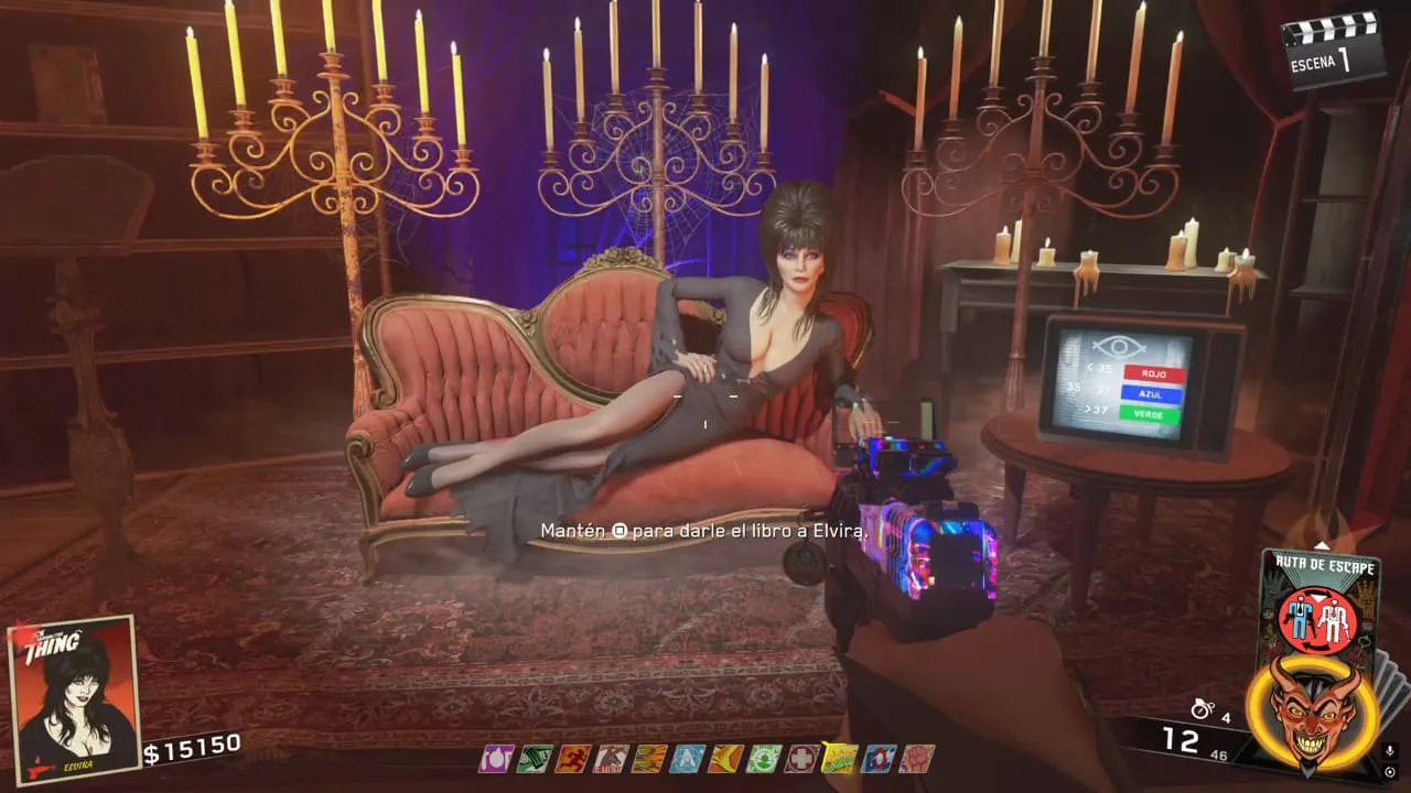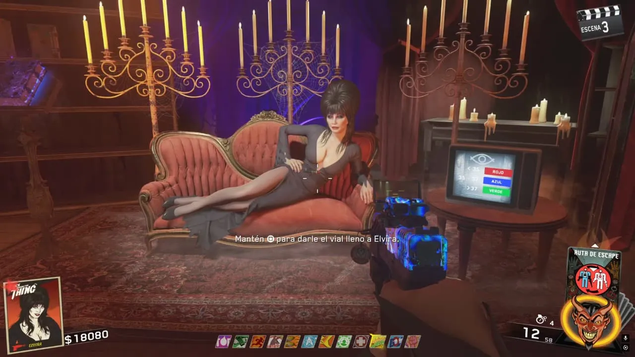 Entrégale el vial lleno a Elvira y saldrá de su mueble y empezara a matar Zombies.