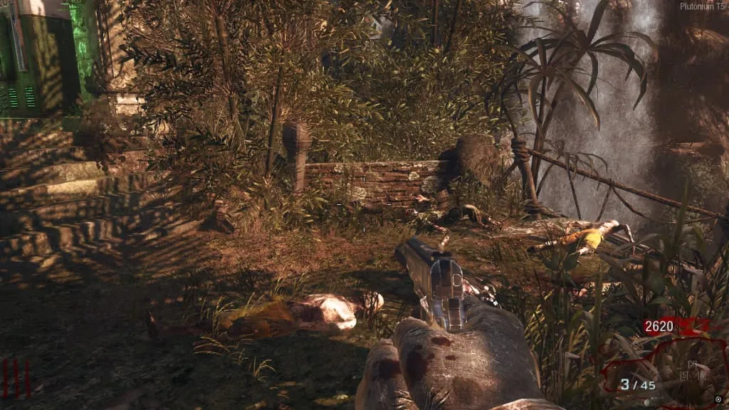 A la derecha de Juggernog/Speed-Cola antes de cruzar el puente colgante.