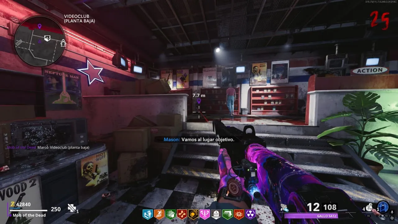 1. Lanza una granada explosiva al lado del estante en Videoclub cerca de Mule Kick.