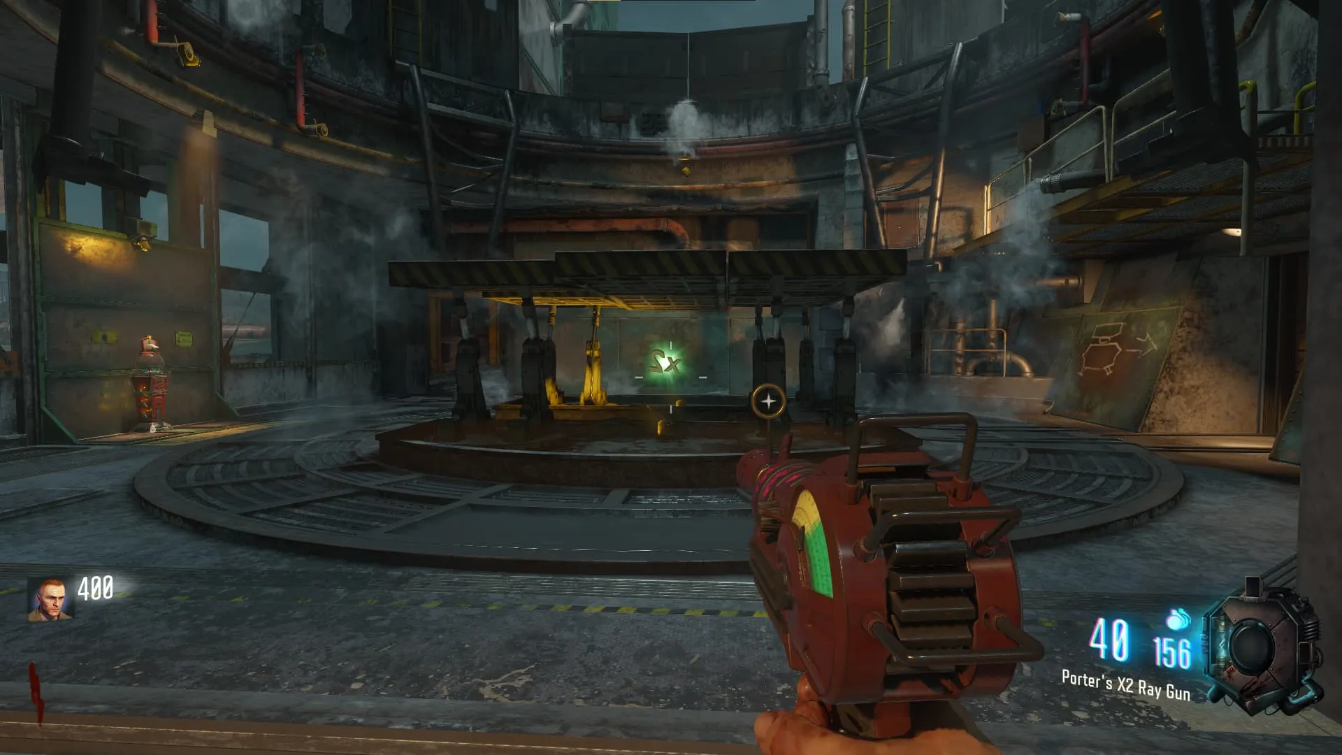 Ve corriendo hasta la zona del Pack-A-Punch y, donde estaba el cohete se encontrará un Power Up aleatorio debajo de la plataforma. Si te tardas demasiado en llegar, el Power Up desaparecerá.