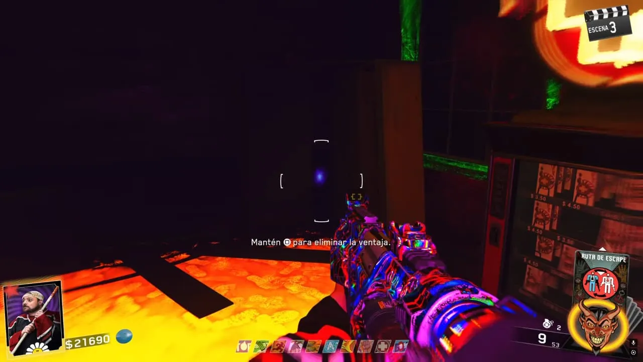 - Dirígete al otro balcón ubicado en la entrada al lado del bar, y girando a la izquierda podrás entrar a otra sala en la cual, apenas entrando al mirar a la izquierda se encuentra otro orbe.